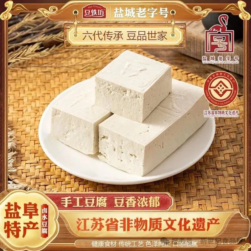 豆轶坊蒲包茶干采用阜宁本地荡区农历三月生长的蒲草为原料,精心编制成蒲包后,再包装豆腐压榨而成。产品自带淡淡蒲草香味、浓郁豆香及百年老卤香味。产品柔嫩细腻、回味余香。