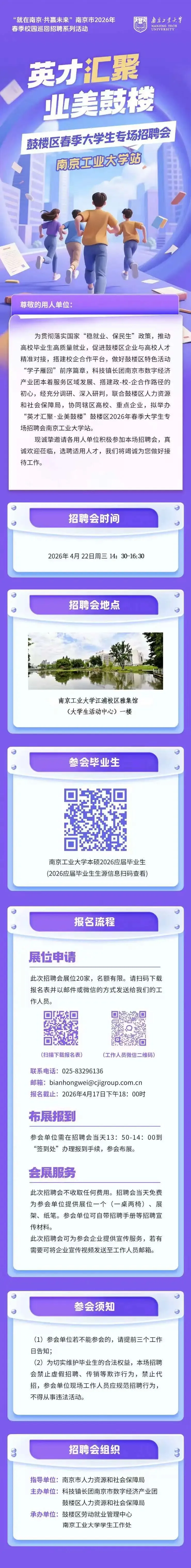 >鼓楼区春季大学生专场招聘会南京工业大学站邀您赴约!