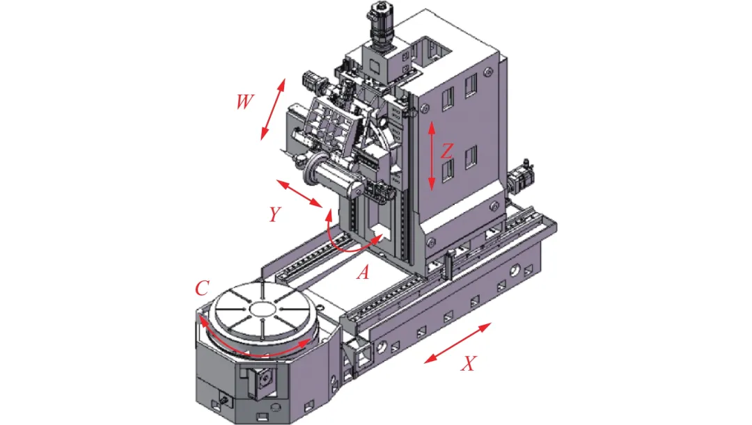 自主设计并生产大型成形磨齿机。该机型采用数控五轴结构,包括3个直线轴和2个旋转轴。X轴为砂轮径向进给轴,Y轴为切向进给轴,Z轴为齿向冲程轴,A轴为砂轮摆动角度,C轴为齿轮旋转轴。