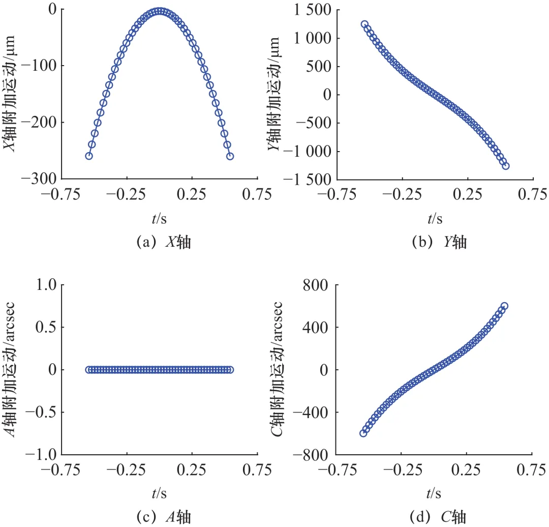 (2)与五轴附加运动模型相比,多项式系数少,计算简单易操作,同时无A轴联动,整体算法迭代稳定。