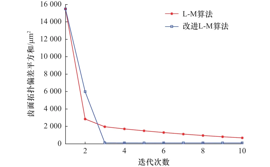 借助改进L-M算法克服传统G-N算法因矩阵奇异而产生的无解缺陷,同时借助策略选取关键参数,提升收敛速度,一般仅需2~3次迭代即可完成四轴附加运动优化。