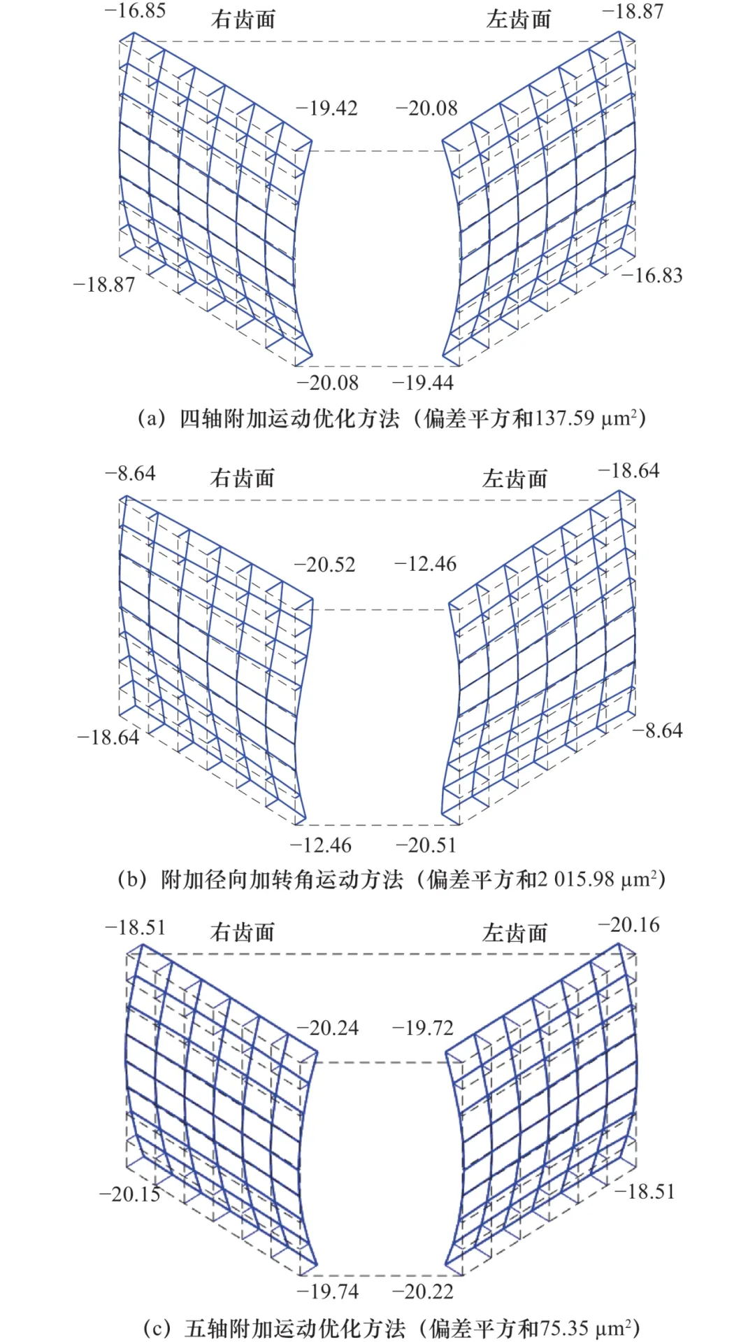 (1)与传统附加径向加转角运动等方法相比有效控制了齿面扭曲。