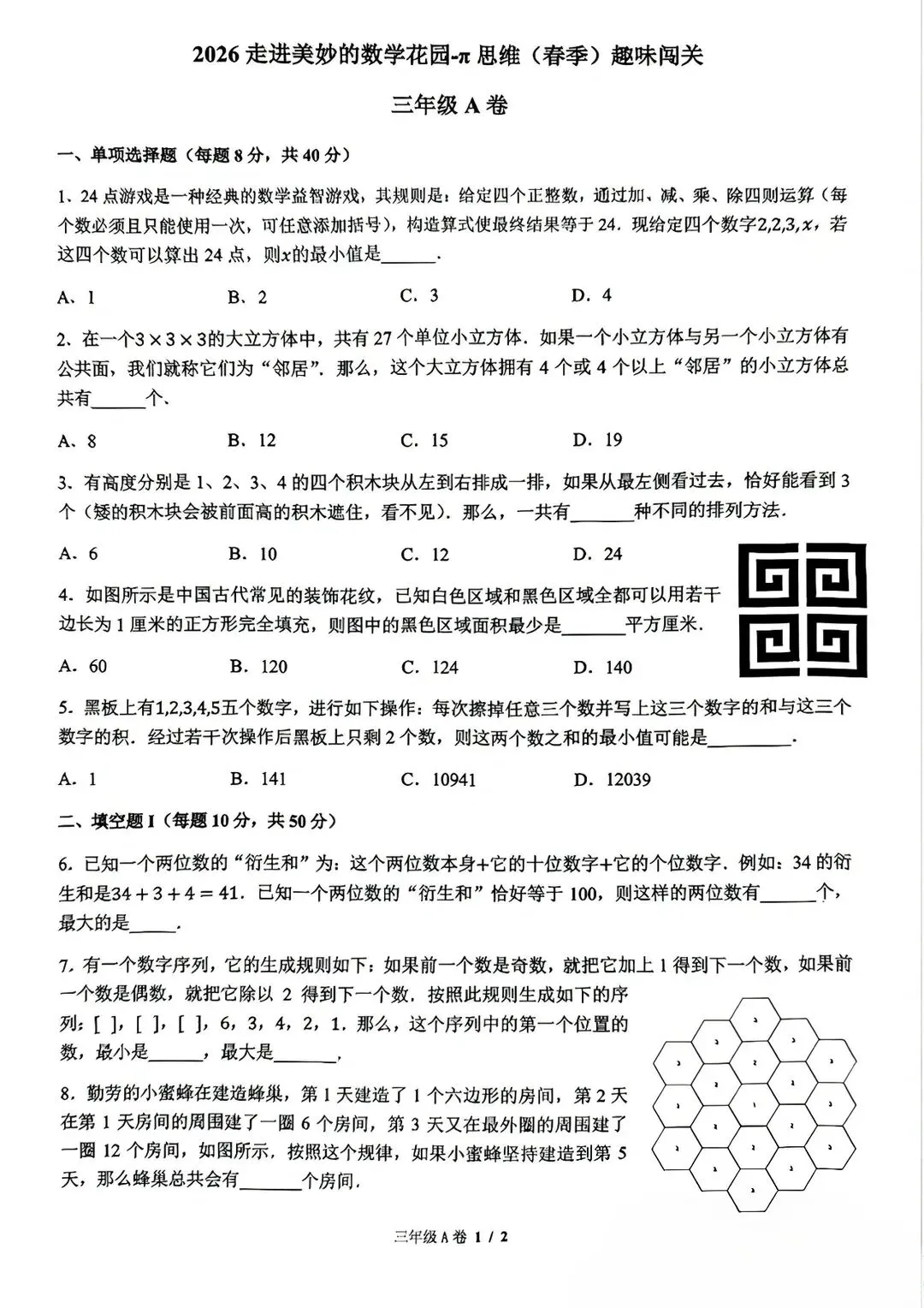 南京最全!4月12日春季走美杯3~8年级A卷真题及答案分享