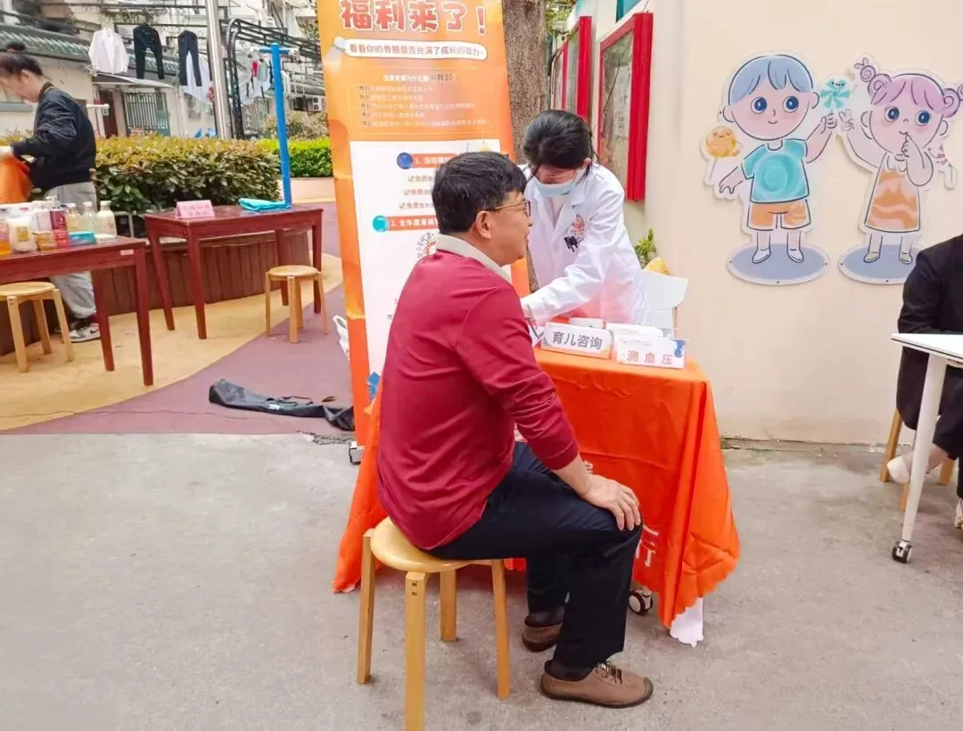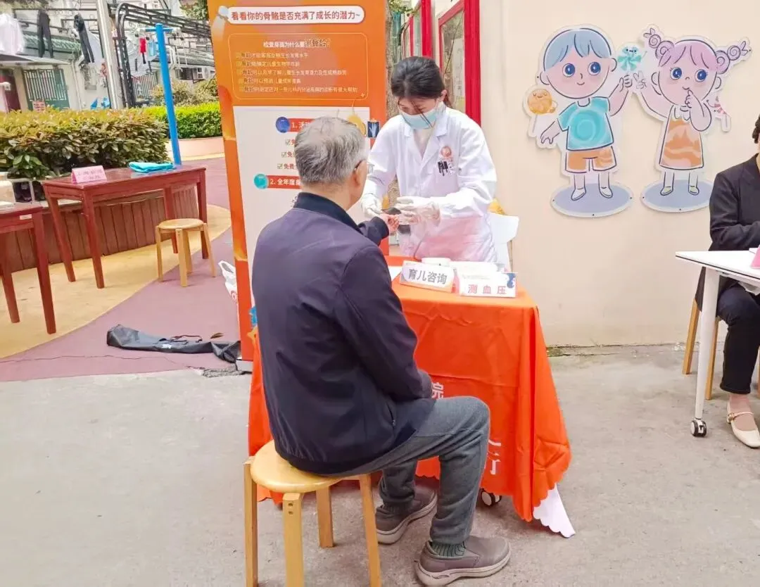 4月10日上午,上海六一儿童医院服务团队在黄浦区南京东路街道山西居委会的便民活动中,为社区居民提供了血压血糖测量及儿童成长育儿咨询服务,将健康关怀与科学养育知识送到居民身边。