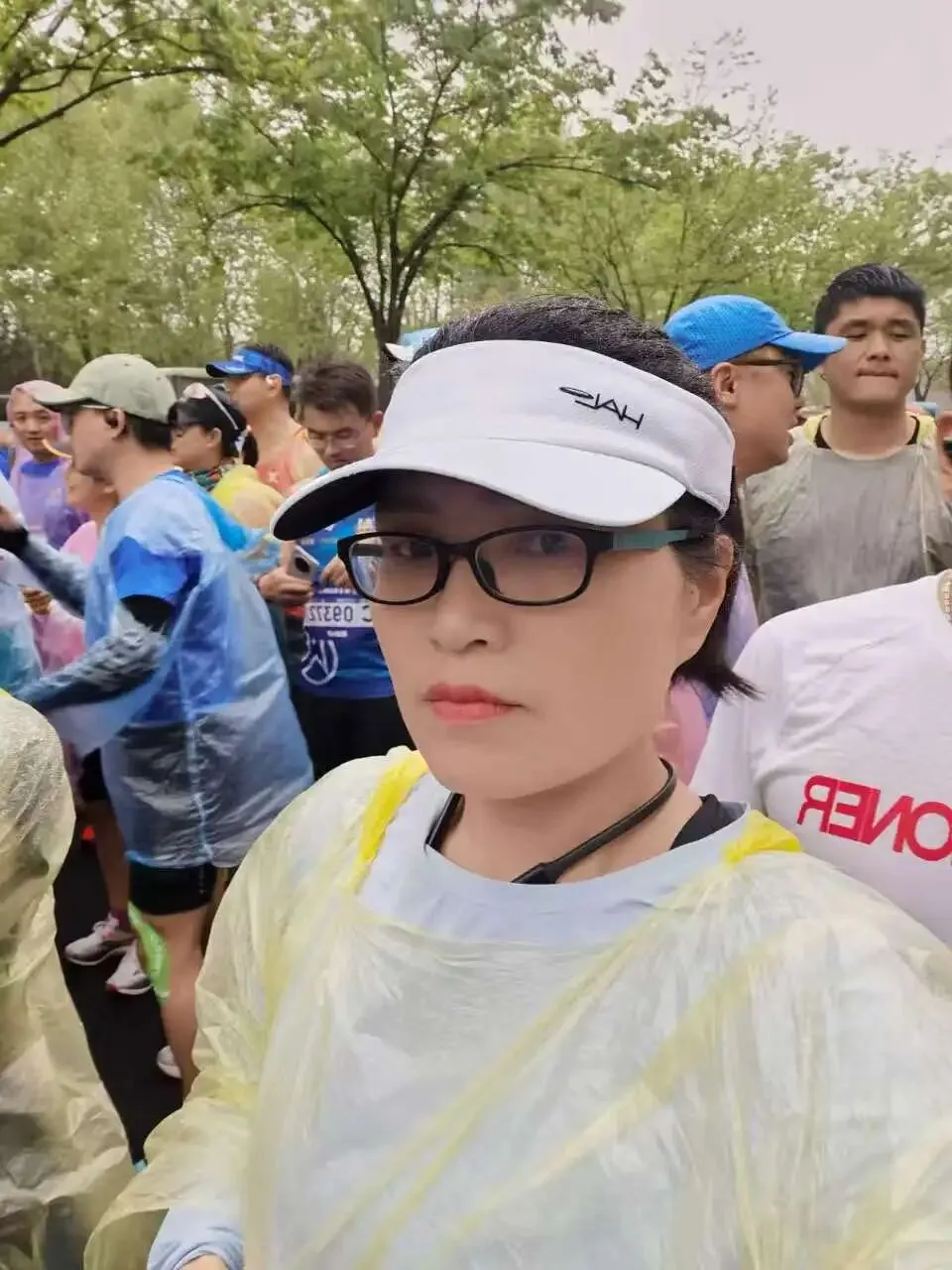 时间来到了比赛日4月12号。5:20起床,6:00左右坐上地铁2号线(今天地铁提前到5:30运营)。出门的时候没有雨,出门之前还查了天气预报好像也没有雨,结果出地铁就已经小雨了。那就勇敢的冲吧。地铁口换掉外套穿上雨衣,依然很冷。我一路小跑去检录口,期间上了厕所,出来的时候说存包已经来不及了,就近放备用车里吧。时间紧张,都没有来的及好好拉伸,随便蹦跶几下吧。