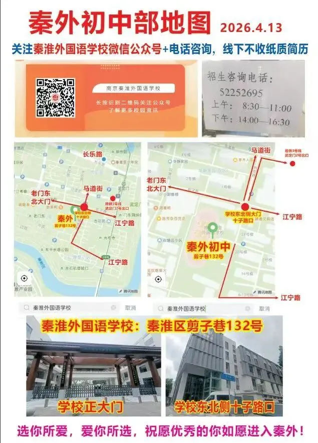 【秦外】学校招生咨询热线开通,时间为上午8:30—11:00,下午2:00—4:30。号码为:52252695,有需要咨询招生信息的,请在工作时间段拨打。