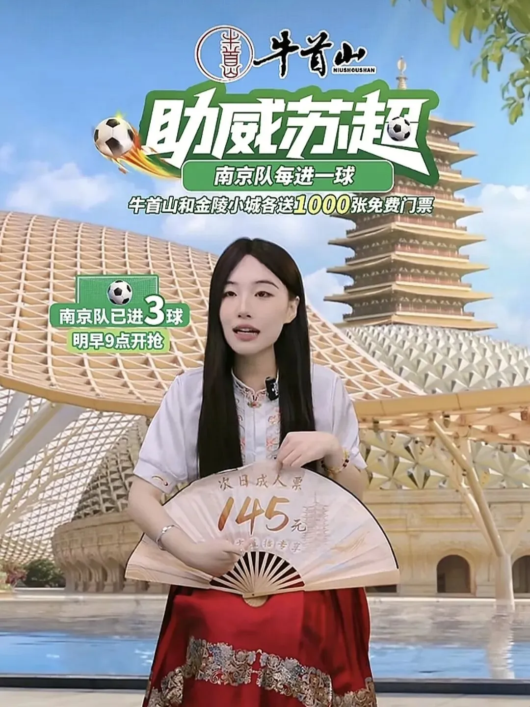🖥️参与方法:南京队赛后22:30,牛首山景区官方抖音直播间免费发放牛首山景区、金陵小城景区门票,具体数量为:南京队进球数×1000张,免费门票数量有限,抢完即止。