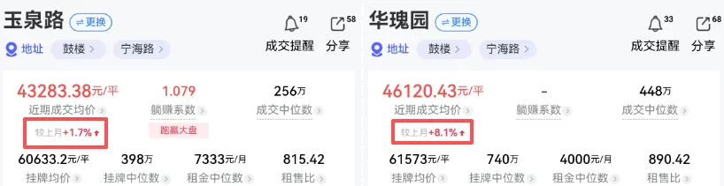 比如“琅小+29中”加持的玉泉路,近期成交均价较上月上涨约1.7%;华瑰园近期成交均价上涨约8.1%;