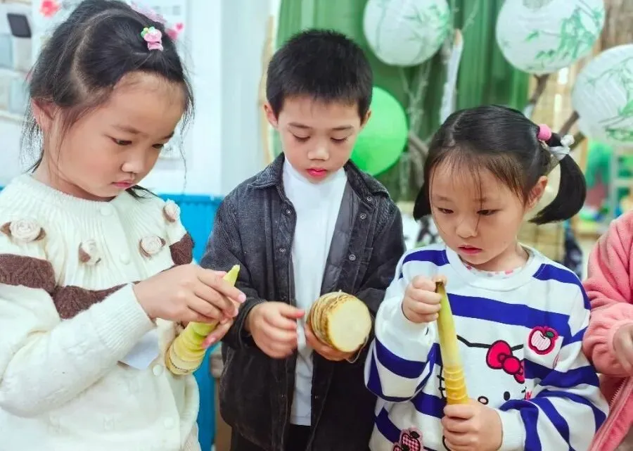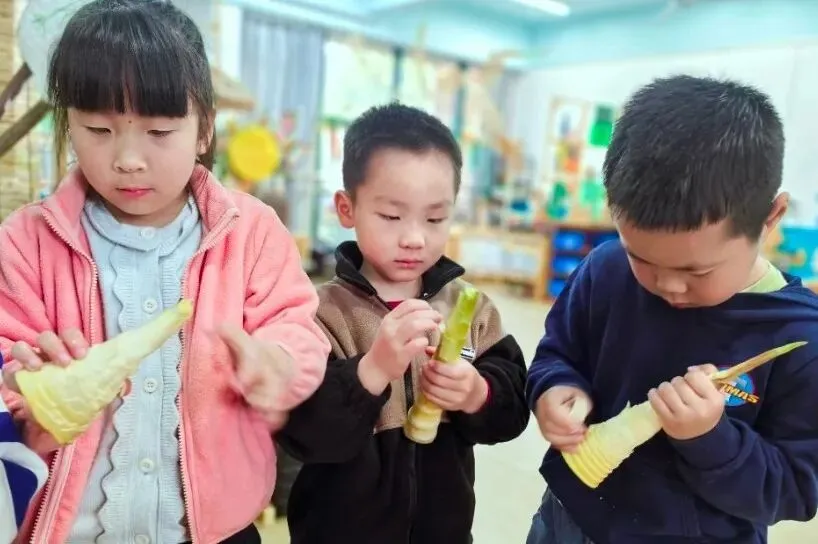 周末,小朋友们都去各地的竹林参加了挖竹笋的活动,热心的小朋友们把挖来的大竹笋带来了幼儿园,引起了一阵阵的欢呼......