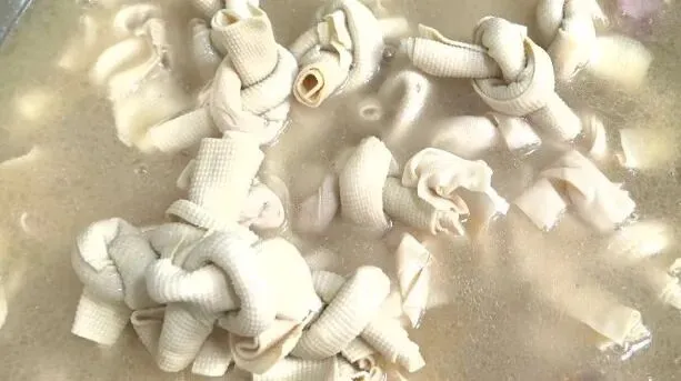 将完整的豆腐皮切成小块,卷一卷,打个结,瞧!豆腐百叶结制作完成啦!