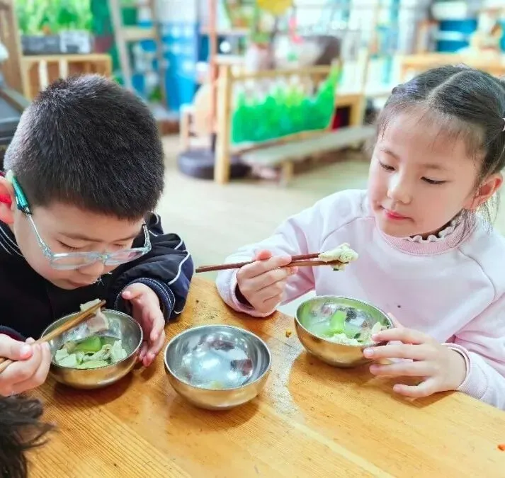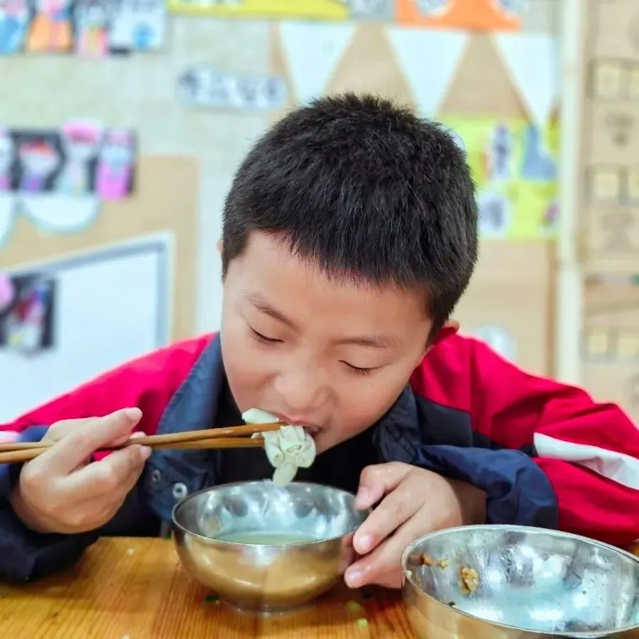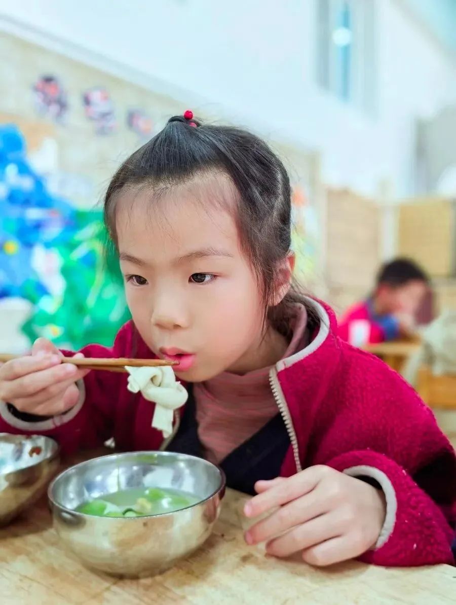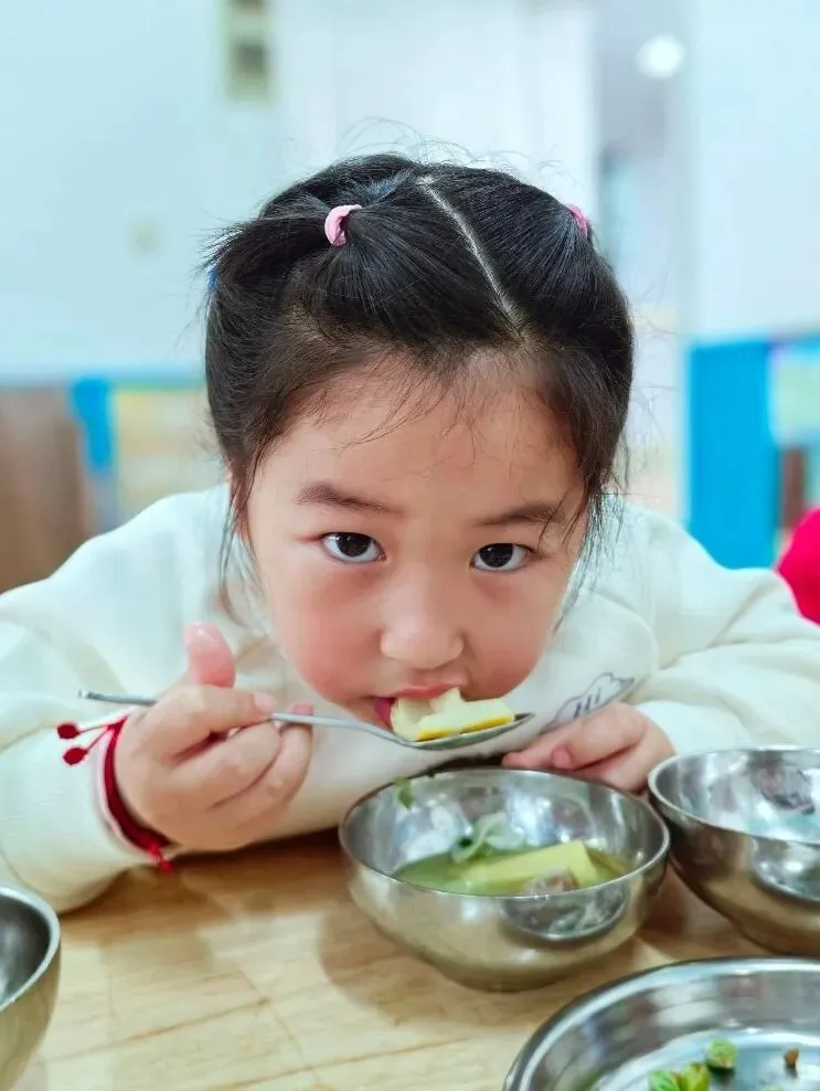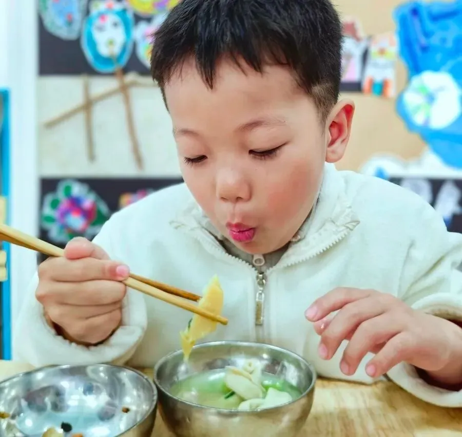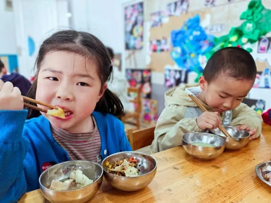 美味制作完成,小朋友们迫不及待地品尝了起来,咸肉的咸味与竹笋的清甜完美的融合到了一起,一口下去鲜味十足。