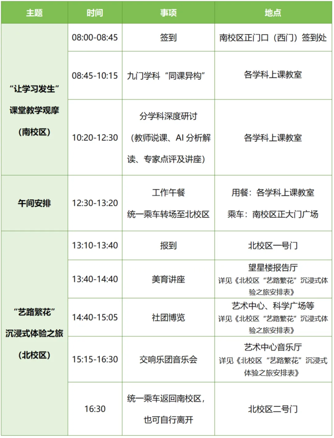 本次活动将集中呈现我校在学科美育与AI赋能课堂观察等方面的阶段性教育成果,让我们共同见证思维与审美同频共振,见证技术为教育拓展更多可能。