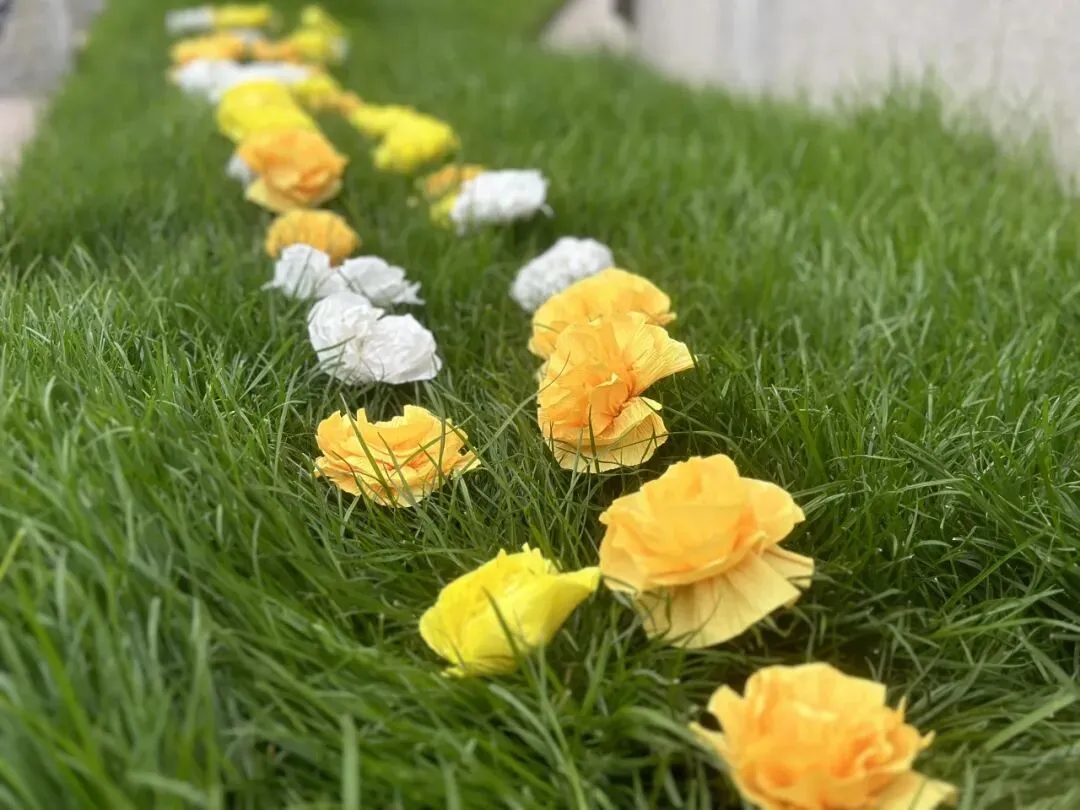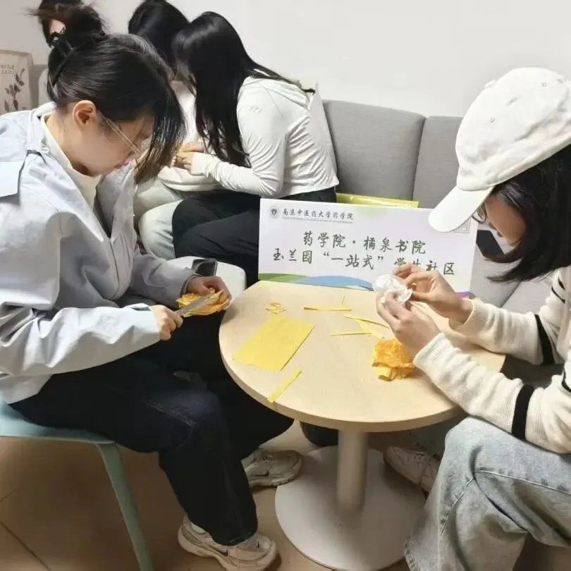 活动前一天,同学们在橘泉书院·玉兰园一站式学生社区开展纸花制作活动。大家亲手制作白菊、黄菊等纸花,以朴素真挚的方式缅怀雨花英烈。