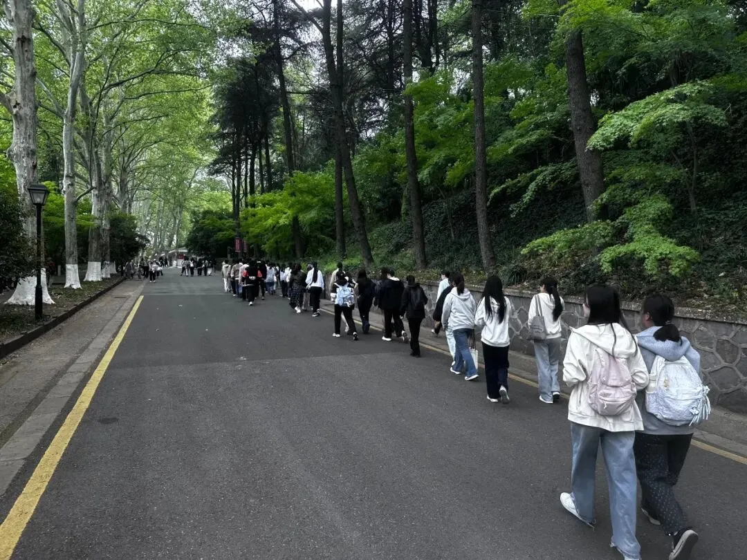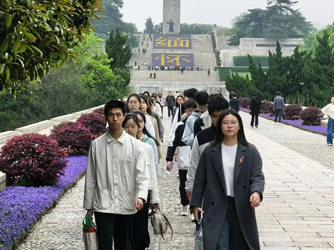 同学们前往雨花台烈士纪念馆参观学习并在馆前合影。馆内一件件珍贵文物、一幅幅历史照片,生动展现了革命先烈坚守信仰、舍生取义的崇高精神。同学们认真驻足观看,深刻体会到红色政权来之不易、新中国来之不易、今日幸福生活来之不易。中午,全体人员在陵园南门集合有序出园。