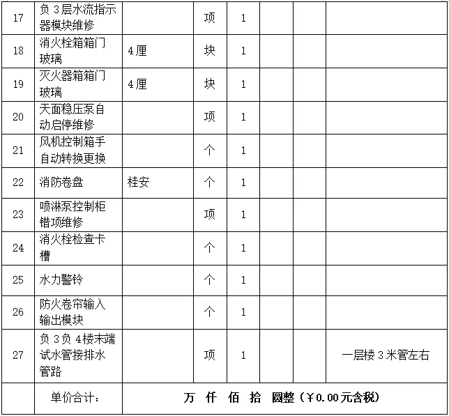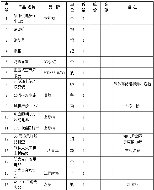 注意:需求清单各项均为包干价,含货物采购、运输、安装、调试、质保及税率等费用。
