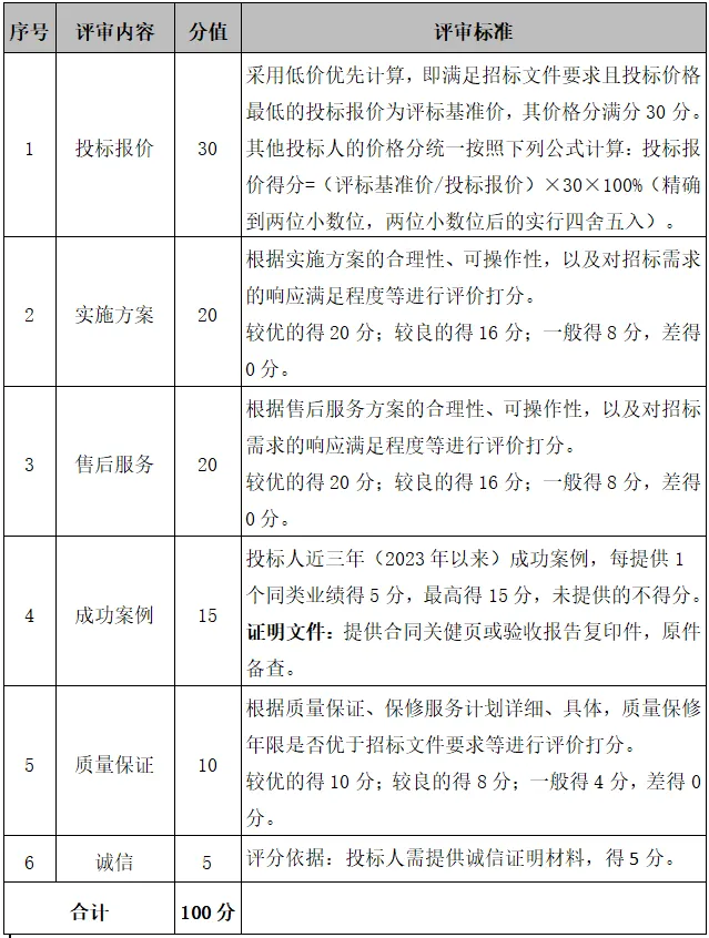 3.评/定标方法:采用综合评分法。