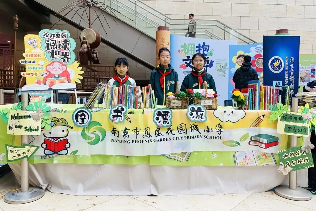 为参与此次书集活动,凤凰花园城小学四(1)班的师生和家长提前筹备,从筛选闲置图书到设计摊位形象,全程由孩子们积极参与。大家共同构思,将巧思与创意融入每一个细节,让小小的摊位既充满书香气息,又兼具童趣与六朝文化韵味。