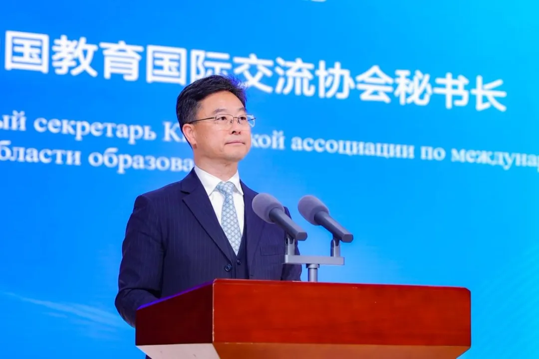 杨军秘书长在致辞中对普希金诺市教育代表团表示欢迎。他指出,2026-2027中俄教育年是两国人文交流领域的盛事,更是深化中俄新时代全面战略协作伙伴关系的重要举措。中国教育国际交流协会深耕中俄教育合作,打造了中俄大学生艺术联欢节、中俄儿童创意节、全国中学俄语教师培训项目、中俄大学校长论坛、“千校携手”项目等多个中俄教育交流品牌项目。中国教育国际交流研修学院推出的“中俄未来人才培养计划”,聚焦培养具有中俄双语背景、胜任未来发展的国际化复合型人才,为中俄青少年互学互鉴搭建了桥梁。