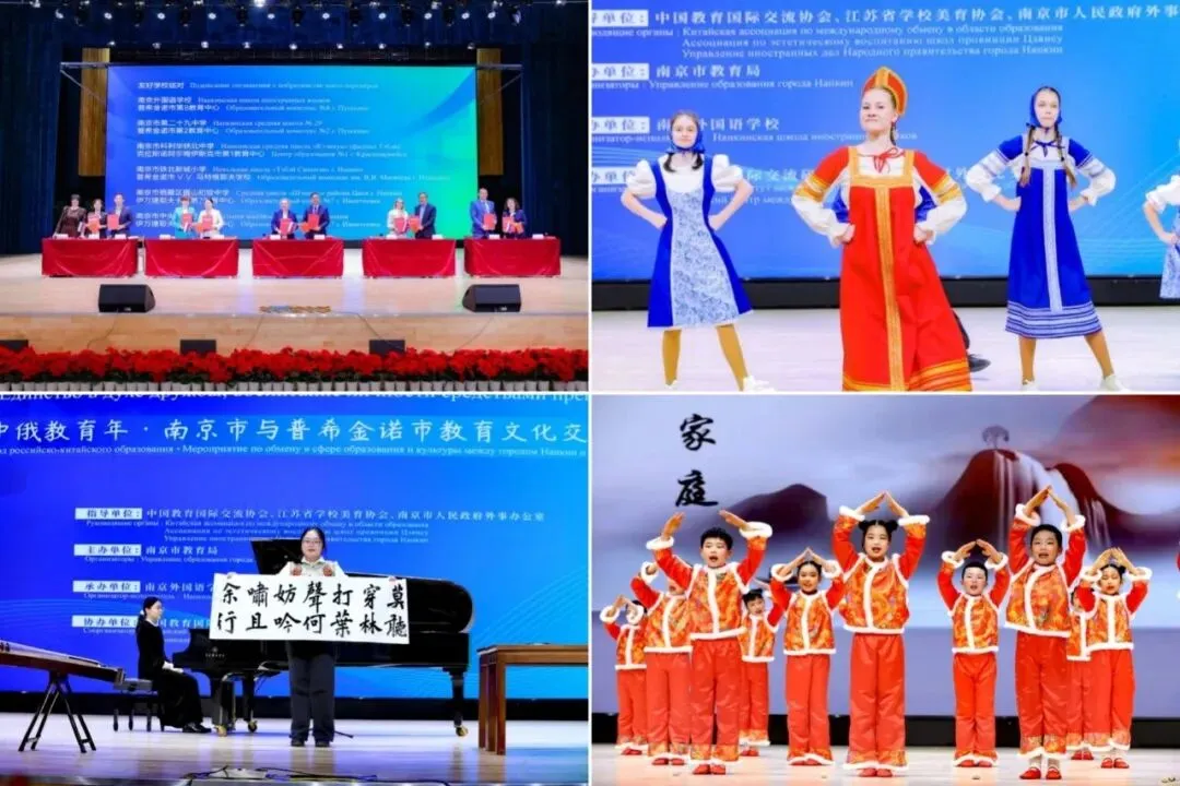 活动现场,南京外国语学校、南京市第二十九中学等6所南京市中小学校与普希金诺市的中小学校结为友好学校。中俄青少年联袂献上歌曲、舞蹈、器乐、书法等精彩演出,充分展现了两国青少年昂扬向上的精神风貌与多元共融的文化魅力。