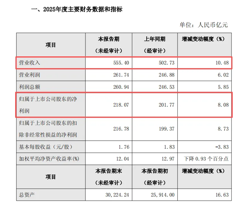 在业绩表现方面,当许多同行还在为规模增长焦虑时,南京银行却交出了一份颇具分量的成绩单。根据南京银行年初发布的2025年度业绩快报(未经审计)显示,全行去年营收已突破555亿元,净利润超218.07亿元。特别是其信用卡业务作为零售版图的核心,更是在“场景”和“数字化”等转型层面被视为城商行中的优秀者。