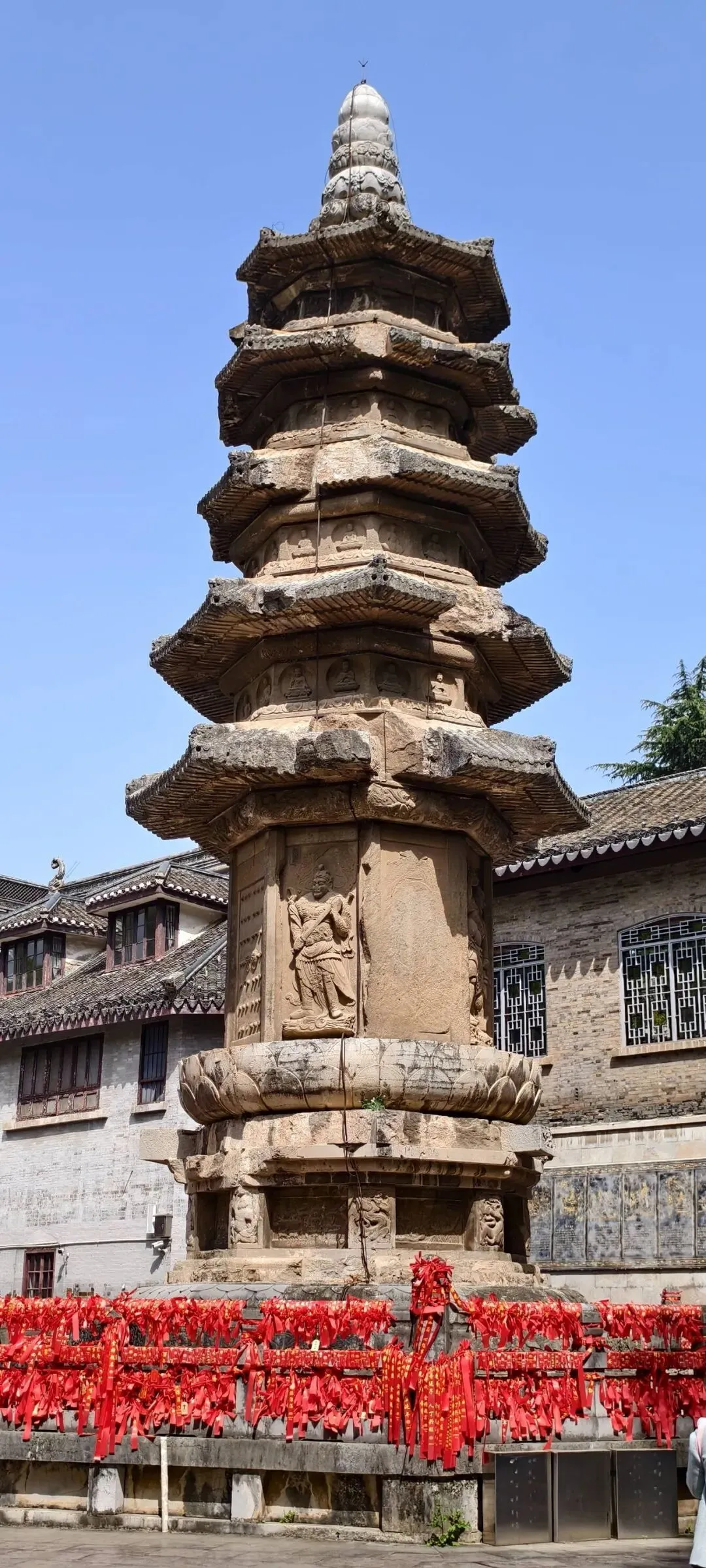 塔不高,五层八面,白石砌的,每一面都刻着佛和菩萨的像。南唐离唐代不远,雕刻还带着唐风的饱满和圆润。飞天衣带飘飘,佛陀低眉垂目,天王怒目圆睁。石头的质地经过一千年风雨,变得温润如玉,摸上去不凉,反而有一种温度。