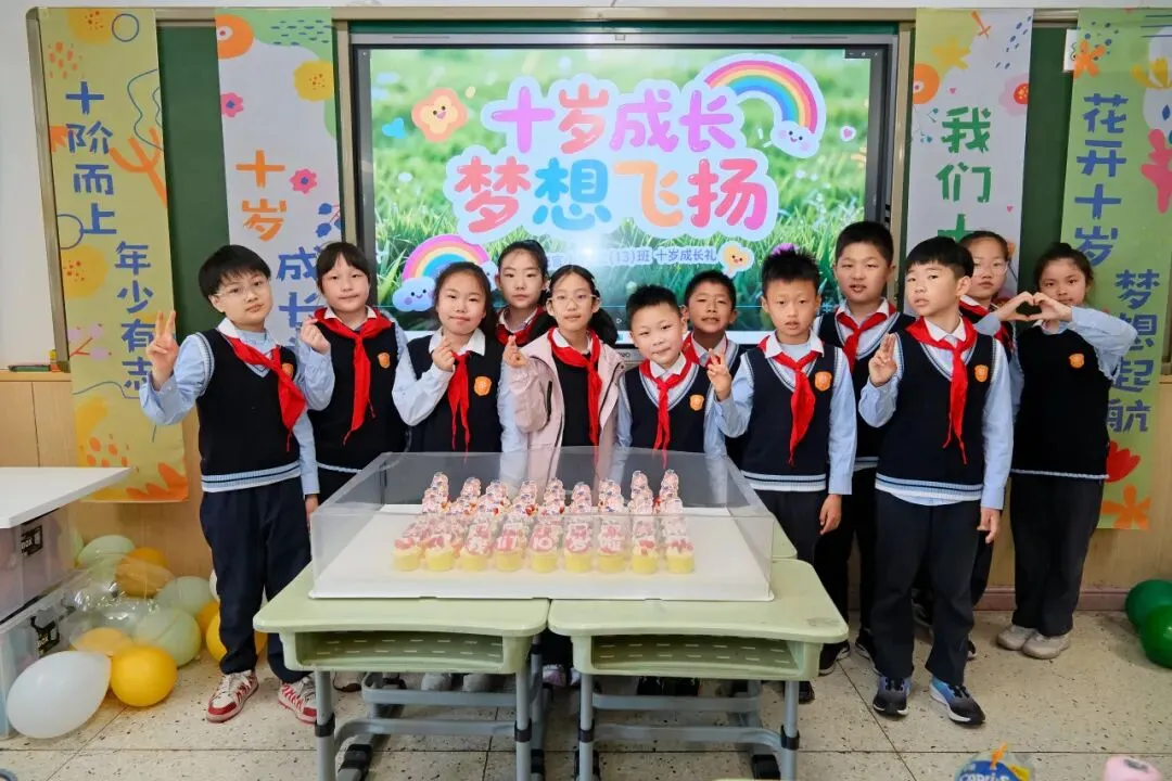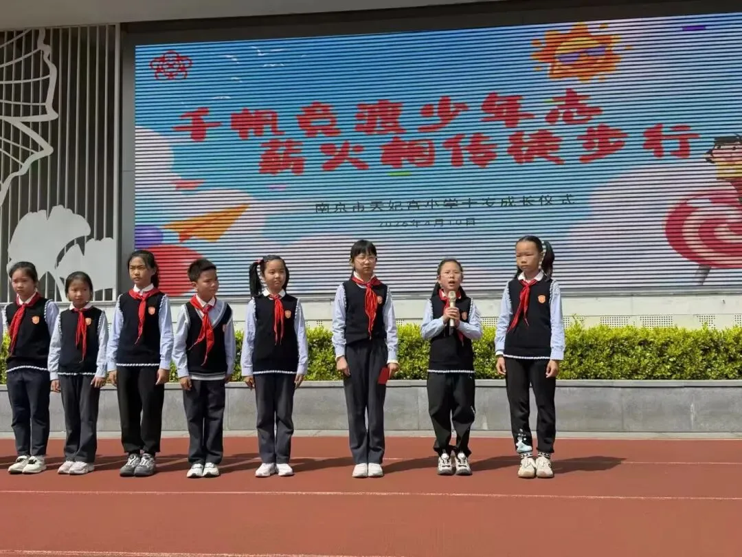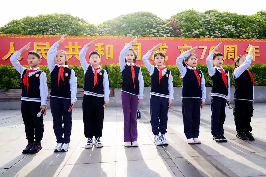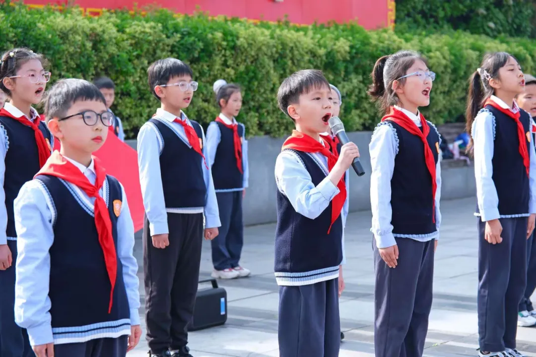 全体同学齐声诵读《七律·人民解放军占领南京》与《少年中国说》,并庄严宣誓。那朗朗书声回荡在广场上空,经典诗词承载着革命先辈的铮铮傲骨与对新时代少年的深切期许,少先队员的誓言嘹亮而有力,字字句句都彰显着他们立志奋发向上、锤炼自我,长大后为祖国发展奉献青春力量的坚定决心。