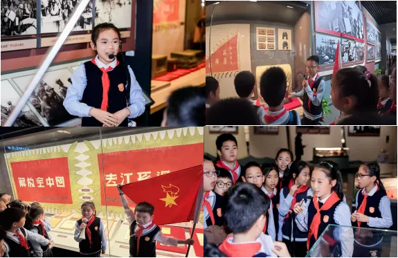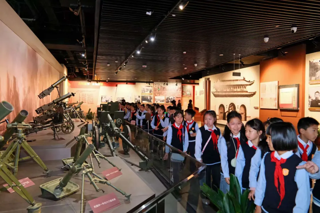 随后,同学们在老师与家长志愿者的引导下,有序步入渡江胜利纪念馆。各班的小小讲解员带领着同学们近距离瞻仰馆内珍贵文物与历史展品。在栩栩如生的汉白玉浮雕前,讲解员生动讲述解放军横渡长江的英勇战斗故事;在总前委群雕旁,孩子们认真聆听五位革命先辈的光辉事迹;看着陈列的军用物资、珍贵情报资料,孩子们仿佛穿越历史长河,亲身感受那段波澜壮阔、浴血奋战的革命岁月,先辈们的智慧胆识与家国情怀,深深触动着每一颗稚嫩的心灵。