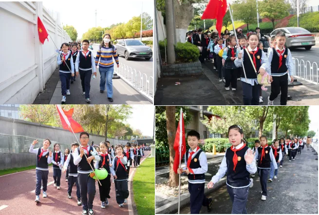 告别纪念馆,同学们踏上约3公里的徒步返程之路。老师们悉心引导,告诉孩子们这段路程虽远不及长征征途,却能磨炼意志、锤炼品格。徒步途中,同学们个个精神抖擞、步履坚定,互帮互助、携手前行,用脚步践行吃苦耐劳的精神。