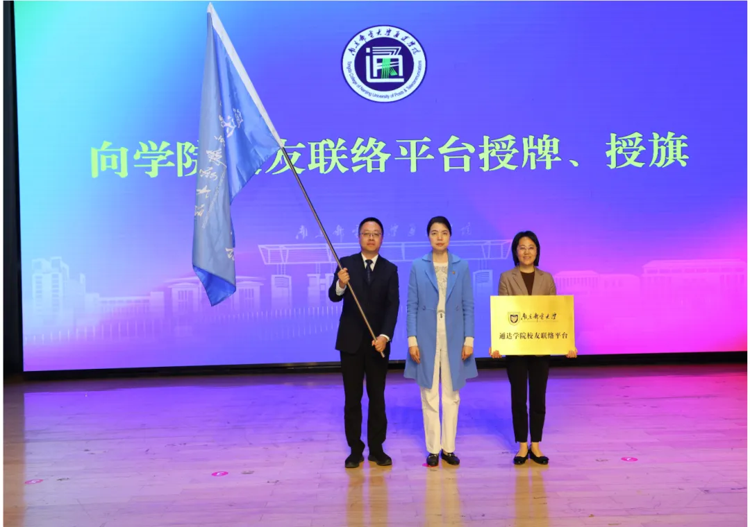 大会表决通过《南京邮电大学通达学院校友联络平台管理办法》及校友联络平台组织机构成员名单。随后举行庄重的授牌、授旗与聘书颁发仪式,南京邮电大学胡纵宇副校长向学院校友联络平台郑重授牌、授旗,并为当选的平台负责人颁发聘书。