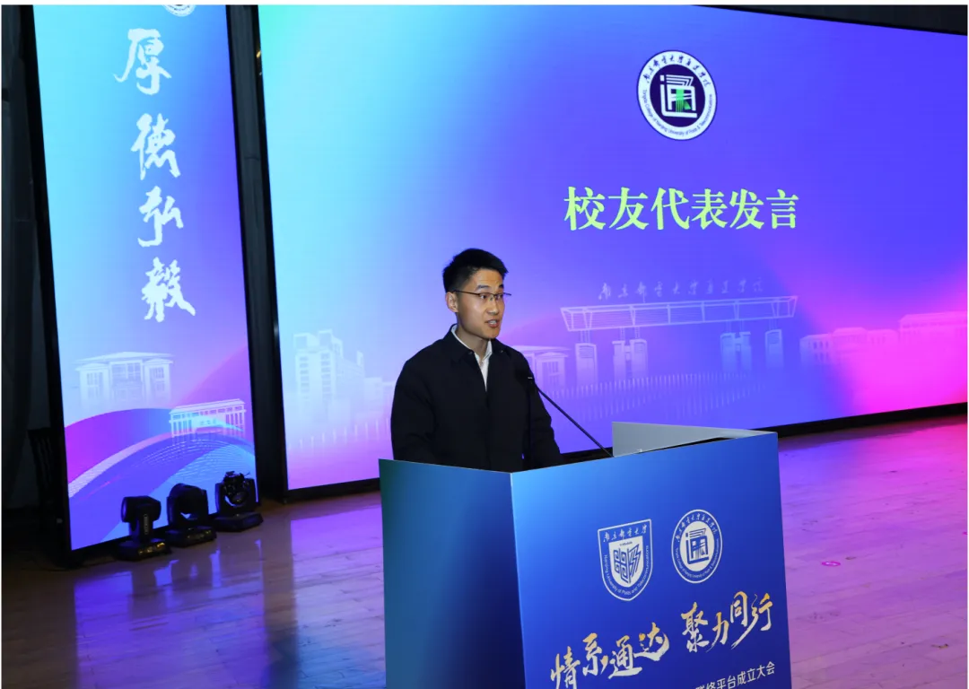 优秀校友代表徐达结合自身成长与职业发展经历发言,深情回顾在母校的求学时光,感恩母校与师长的悉心培育,倡议广大校友心系母校、凝心聚力,以实际行动支持学院建设与发展。