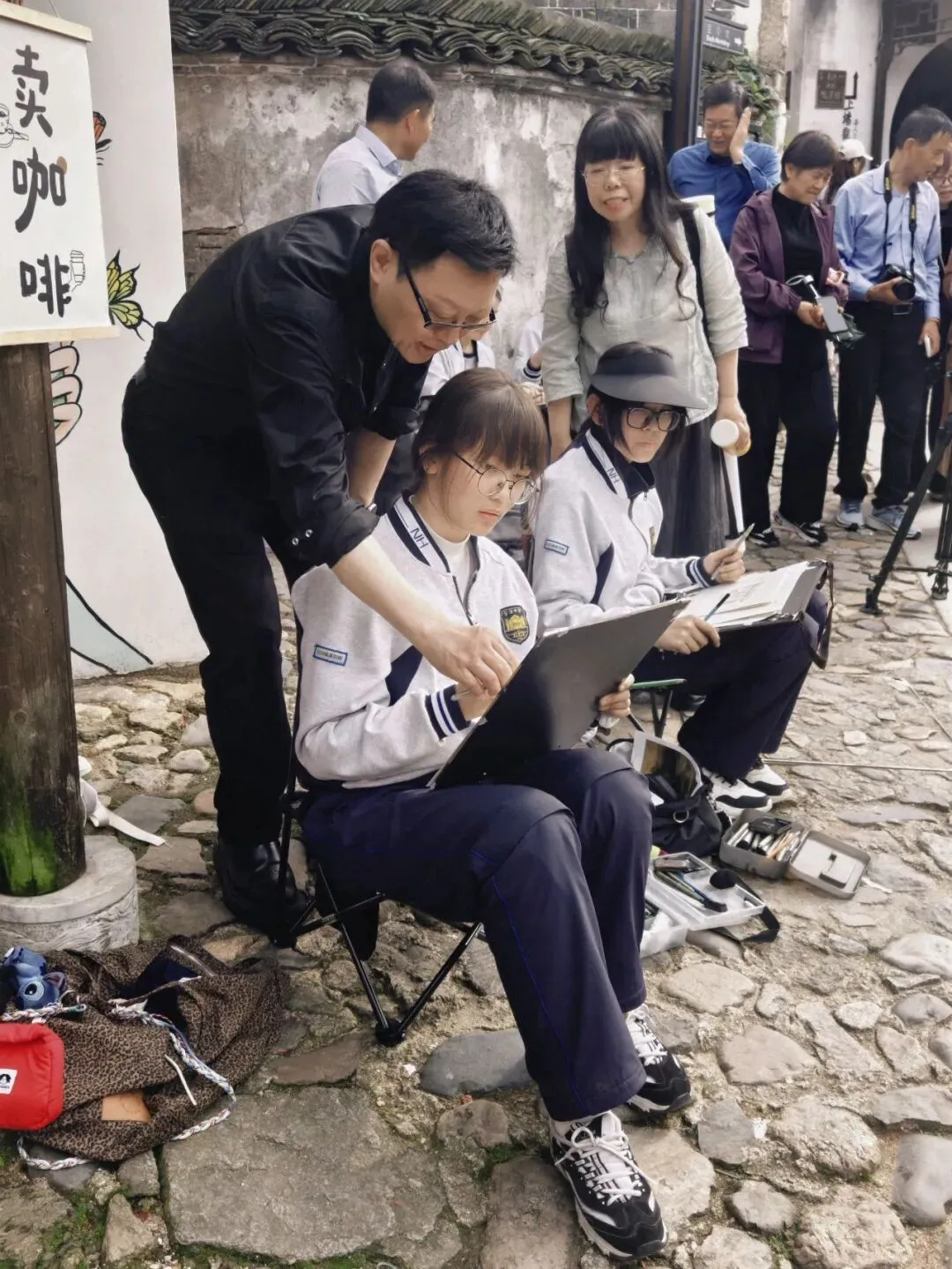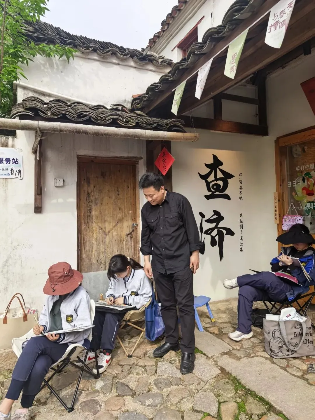高一12班学生徐笑然难掩心中激动,她分享道:“站在查济的古桥上,看着溪水绕巷、白墙映黛,才真正读懂了‘中国画里的山水’。中国画名家老师们的指导让我明白,笔墨不仅是技巧,更是对生活的感知。这次写生让我爱上了皖南的春景,更坚定了我学好中国画的决心。”