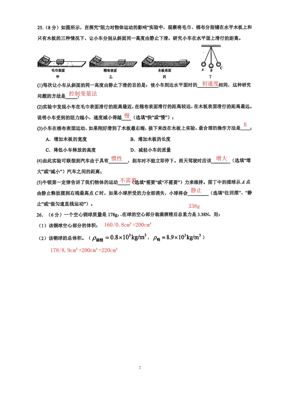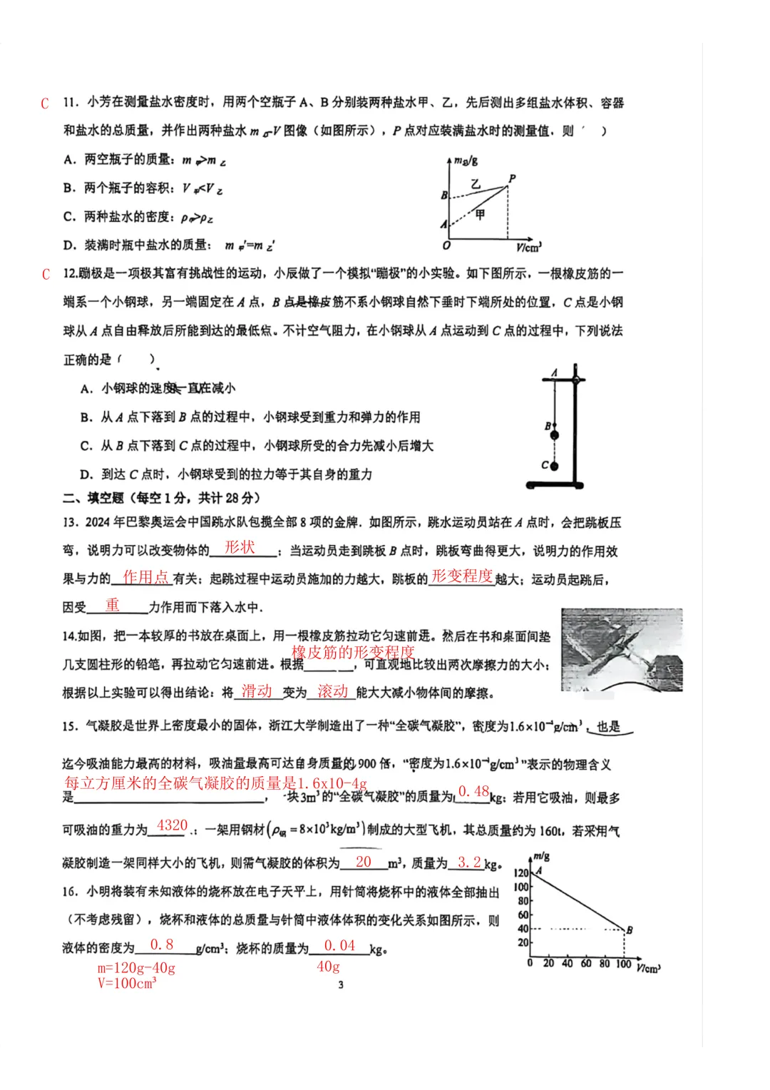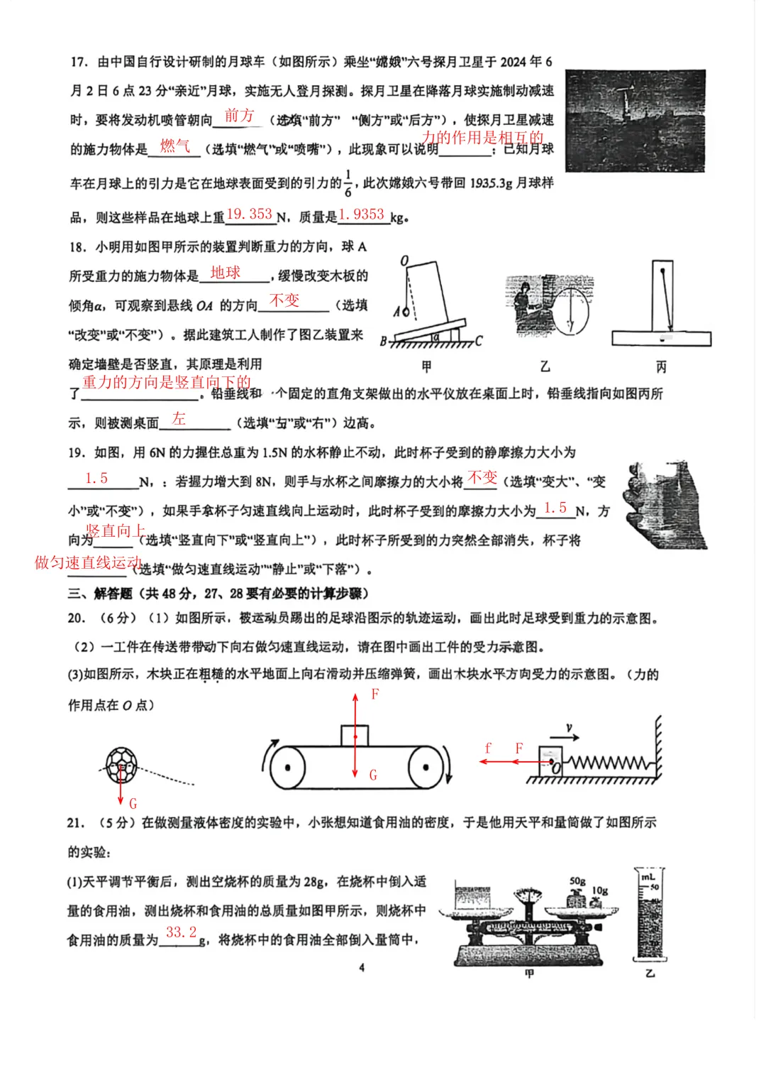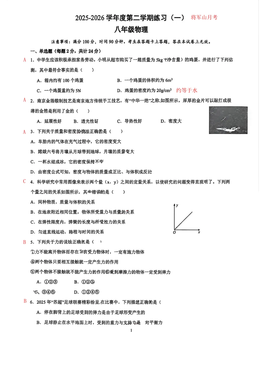 南京八下4月月考2025-2026将军山物理试卷解析