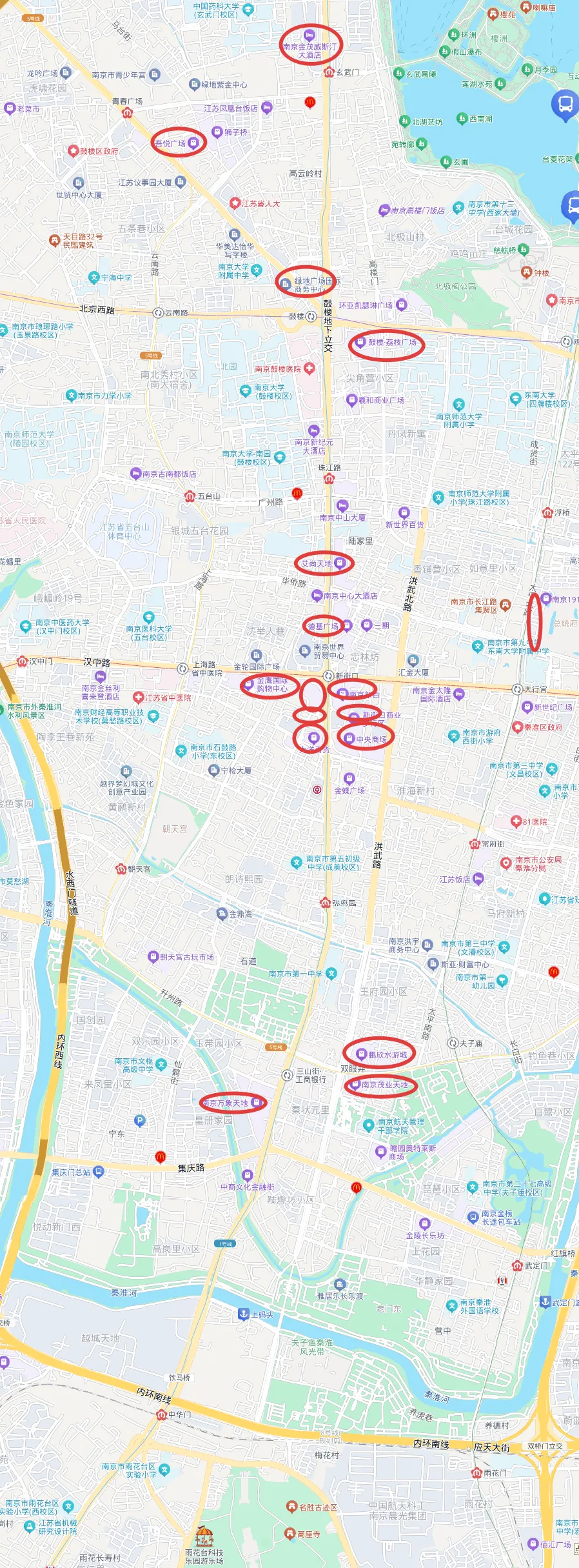 北抵玄武门,南至中华门,全长约6公里,沿线坐拥湖南路商圈、鼓楼商圈、新街口商圈、夫子庙商圈。