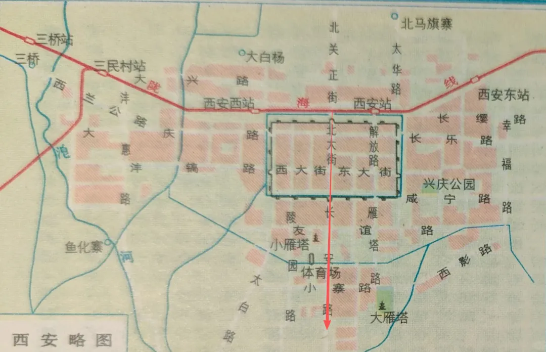 在西安,北大街、南大街早在隋唐长安城已有之,但成为中轴线且改名为南北大街则是明清长安城。