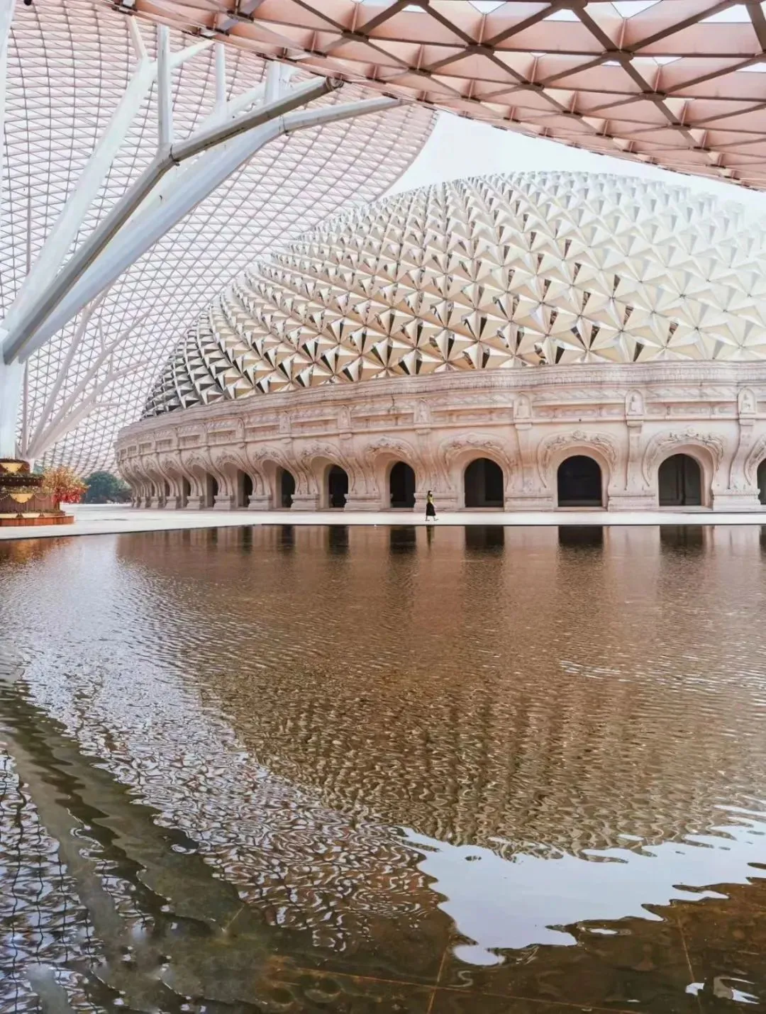 佛顶宫以佛祖顶骨舍利供奉为主题,分为大穹顶和小穹顶两个部分,寓意外供养和内供养。佛顶宫利用原有矿坑建地宫,地下六层,地上三层,很是庄严气派。近年,释迦牟尼佛顶骨舍利将在牛首山被长期供奉,游客可于特殊佛教节日前往佛顶宫瞻礼。