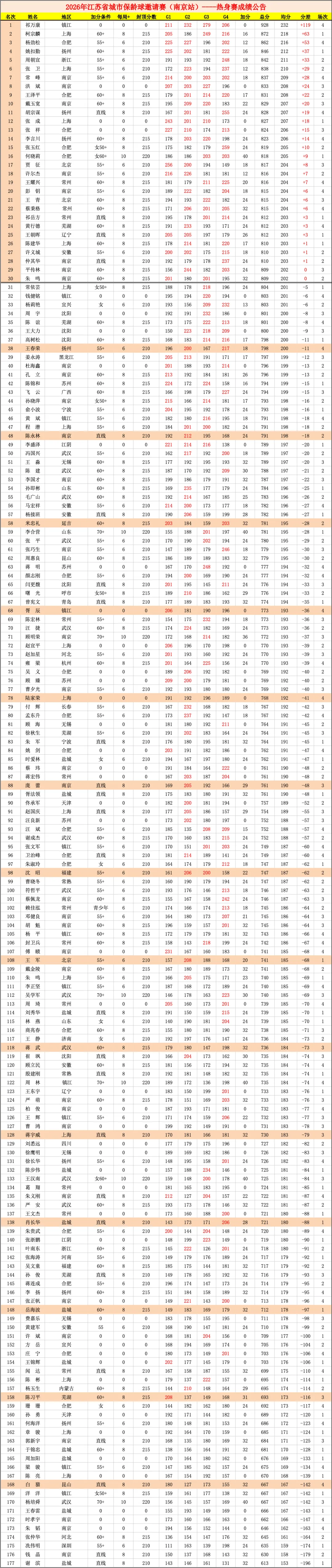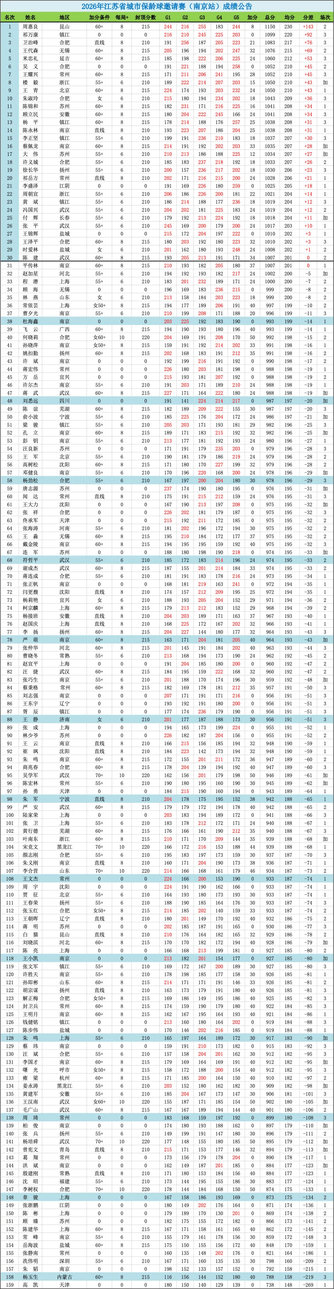 >2026年江苏省城市保龄球邀请赛(南京站)成绩公告