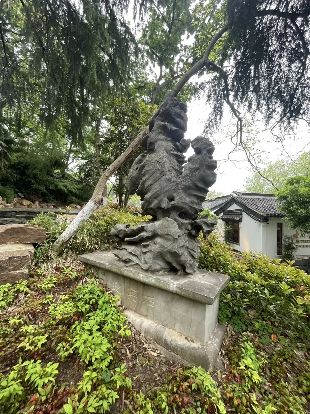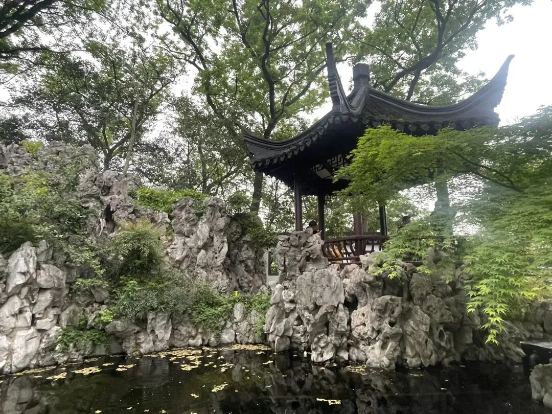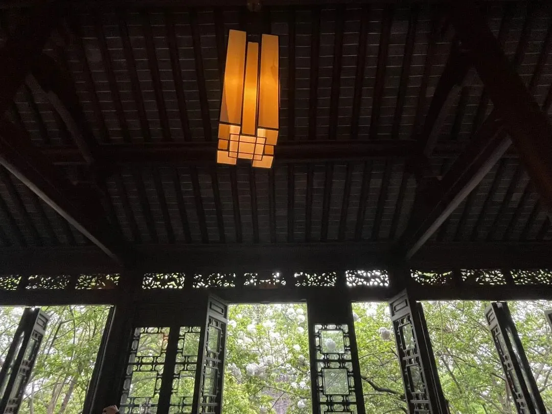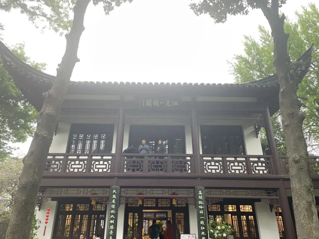 飞檐翘角歇山顶、白墙黛瓦、木质花格门窗,坐落在石砌高台之上,气势庄重。高台下方是放生池(砚池),池壁嵌有三个兽首吐水口,池内点缀太湖石出门左手边为银杏谷方向,还可以一直步行直达石头城/国防园景区;右手边为驻马坡方向。可以根据个人需要继续参观游览。