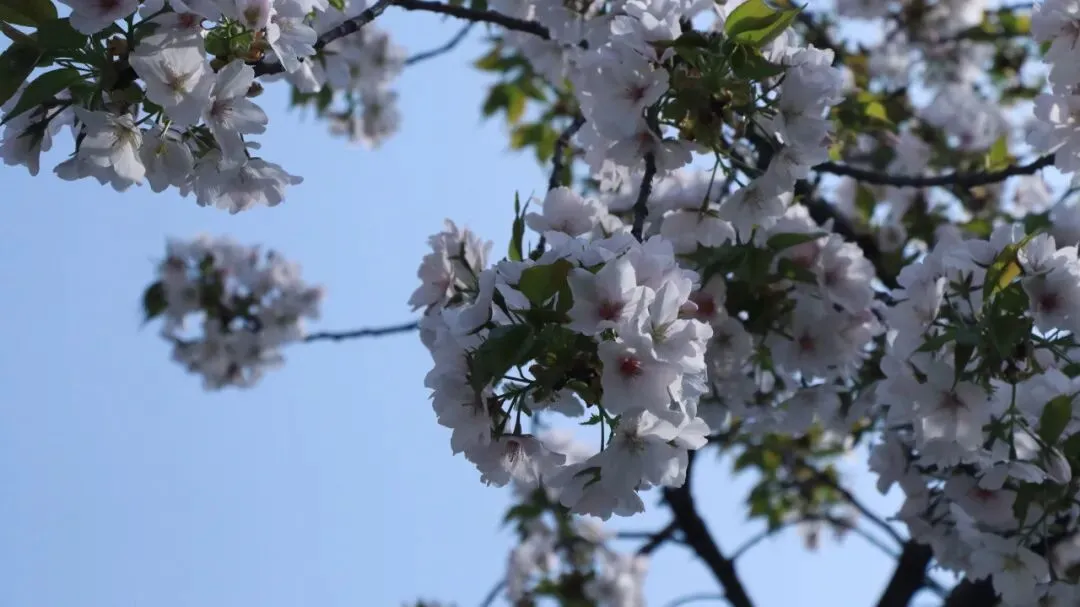 枝桠托着满树繁花,在澄澈的蓝天里织成穹