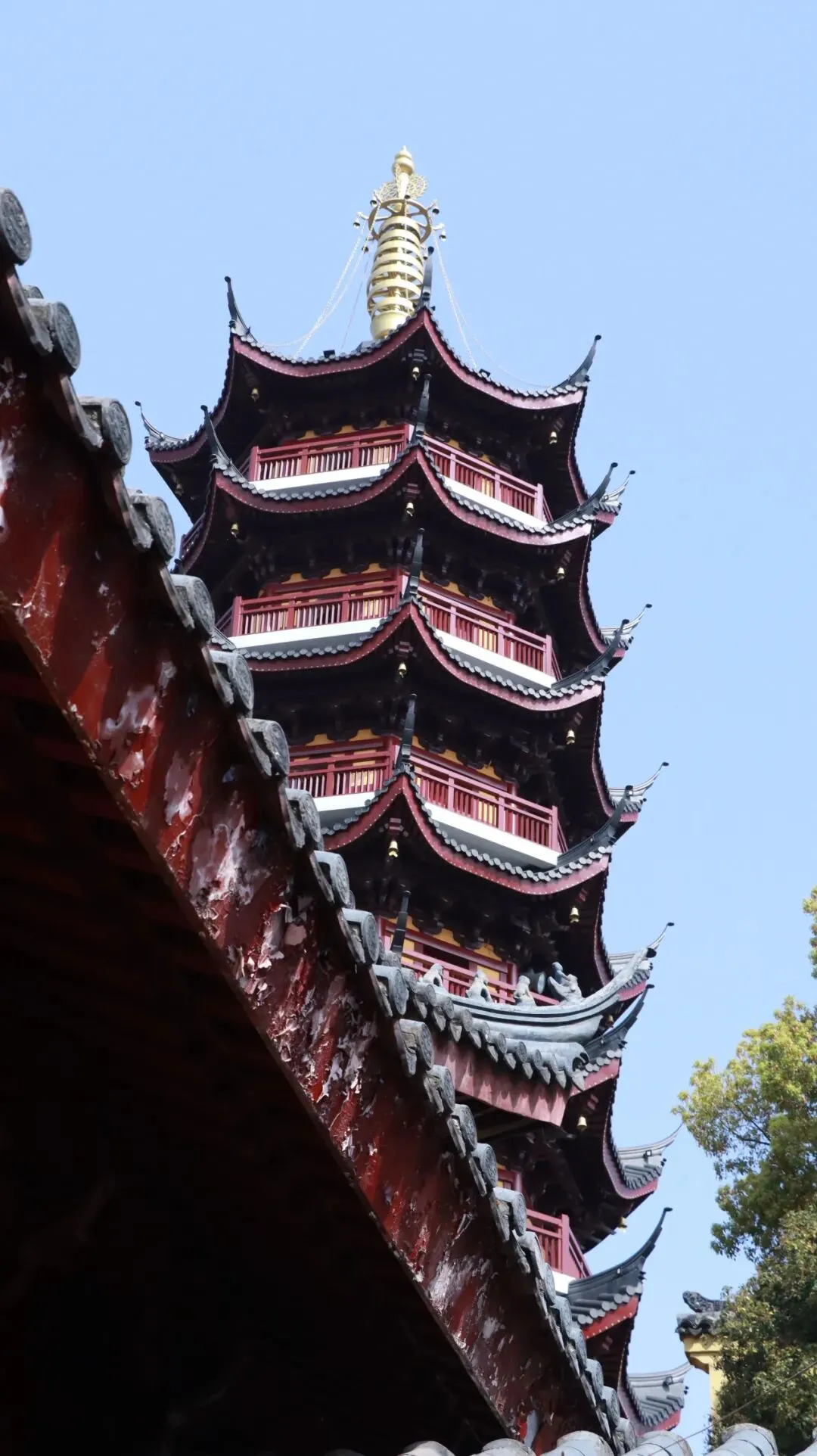 簌簌落在肩头,也落在古寺的黄墙黛瓦上。