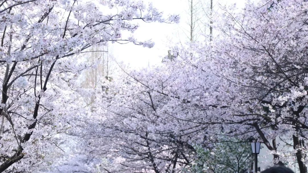 野樱沿着四百米长的街巷肆意舒展,深褐的