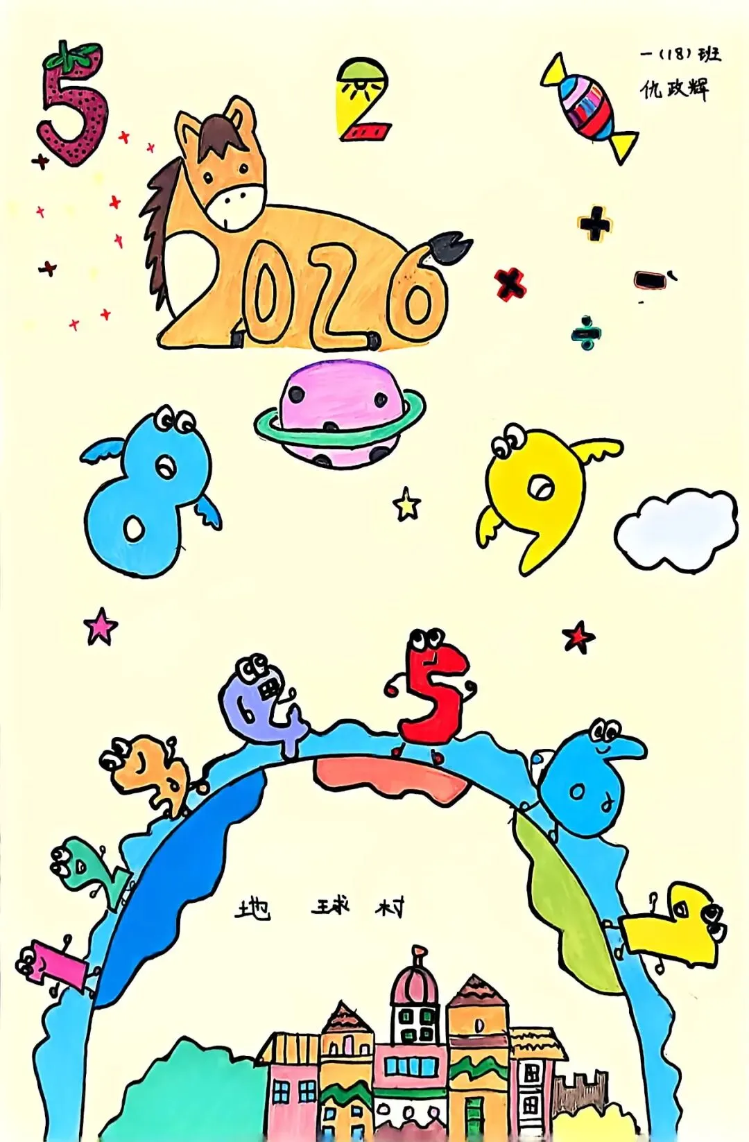 数字创意画活动中,孩子们以数字为创作灵感,巧用色彩、大胆构图,一幅幅童趣满满的创意画作应运而生。原本枯燥的数字摇身一变,在孩子们的笔尖焕发出浓郁的艺术气息,让大家在创作中感受数字与色彩碰撞的奇妙乐趣。