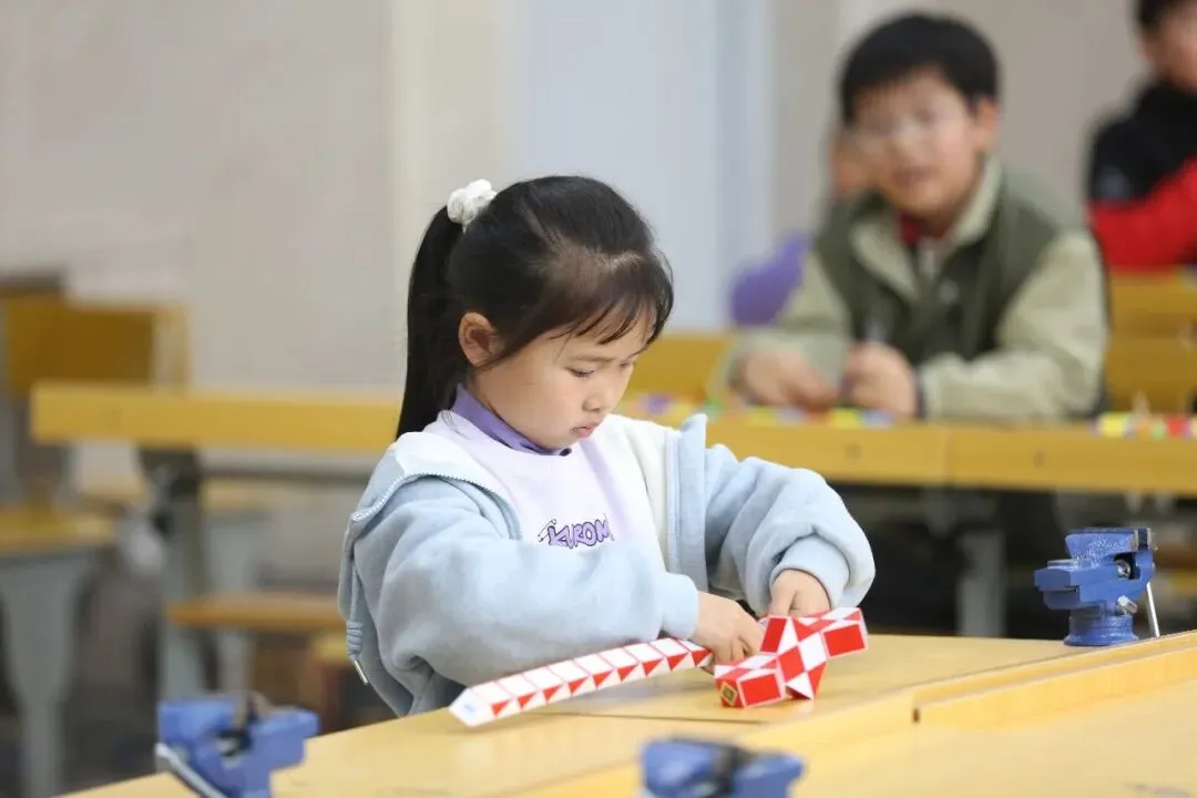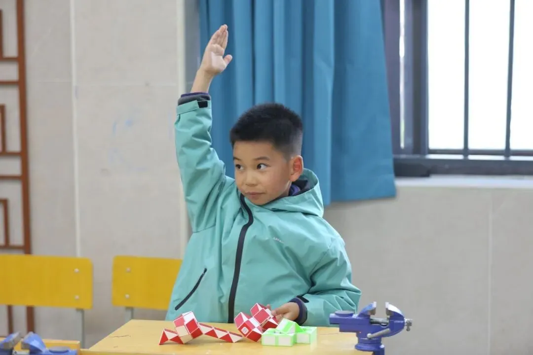 魔尺拼趣赛上,一双双灵动小手玩转百变魔尺,快速拼接、自由造型。孩子们在一次次翻转变化中感知几何形态,锻炼空间思维,解锁了数学藏在指尖的无穷乐趣。