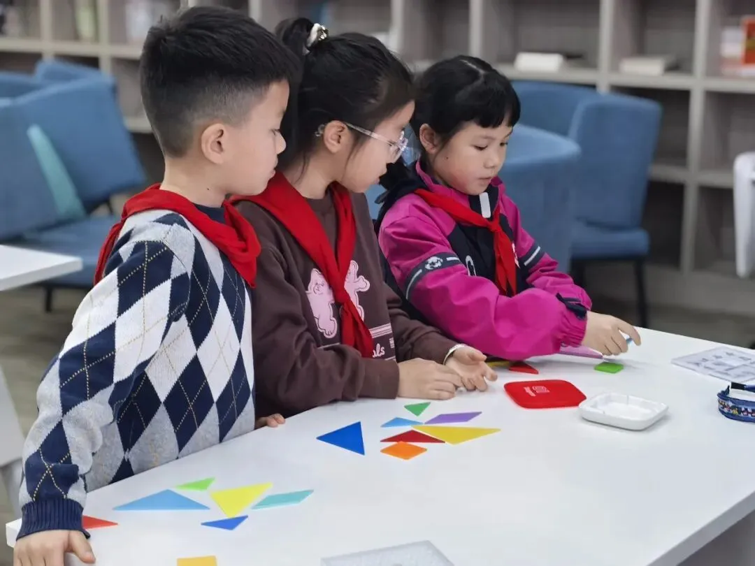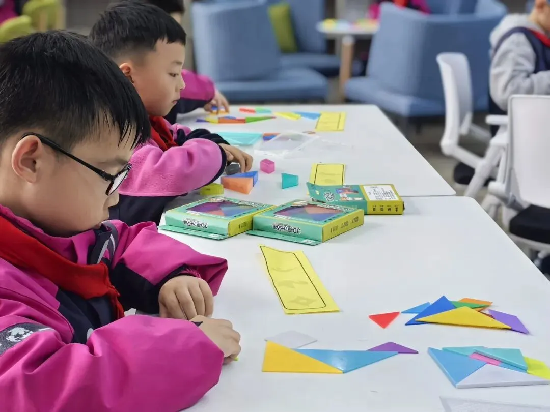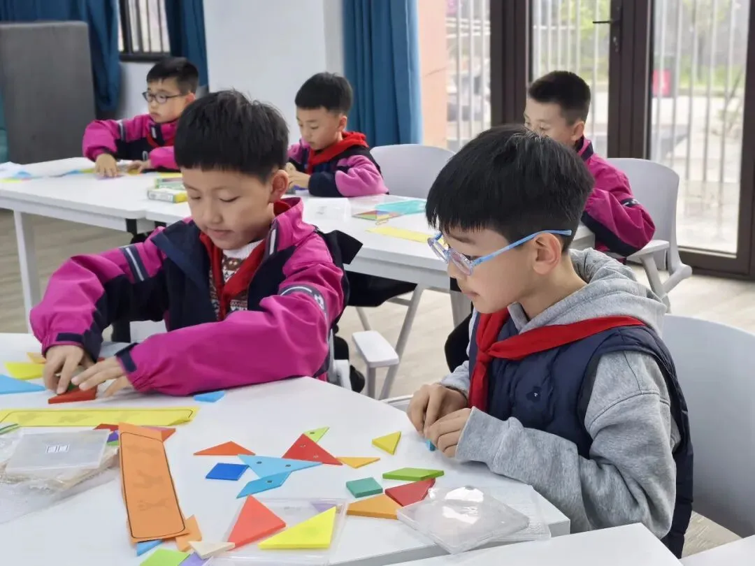 七巧板拼搭活动里,一块块小巧的七巧板,在同学们的巧妙组合下,拼出多样图案、鲜活造型。方寸之间,尽显图形搭配的灵动美感,也让孩子们在拼搭中深化了对图形的认知。