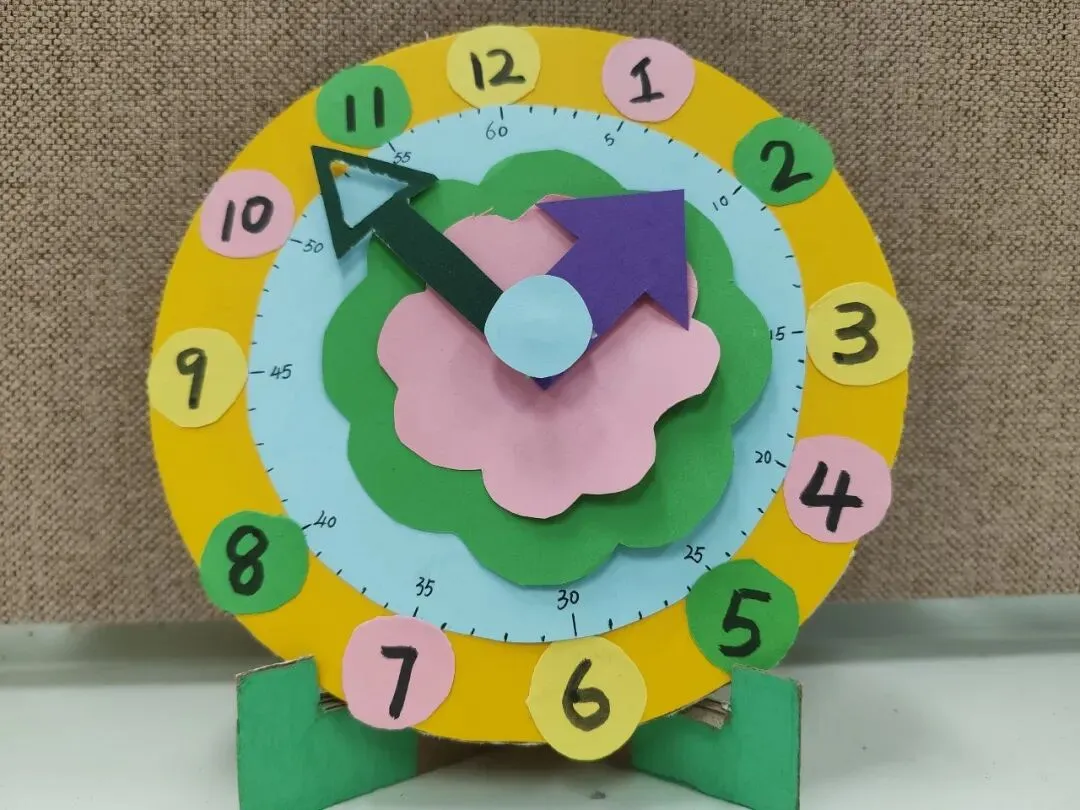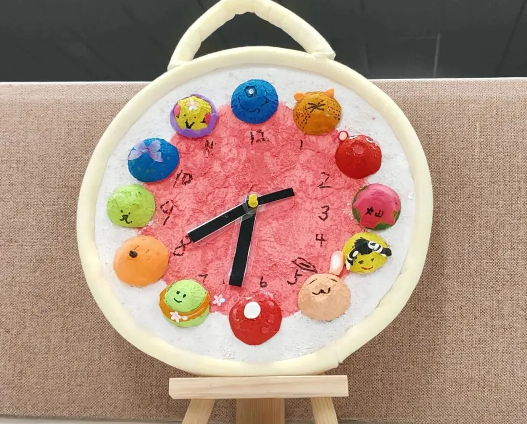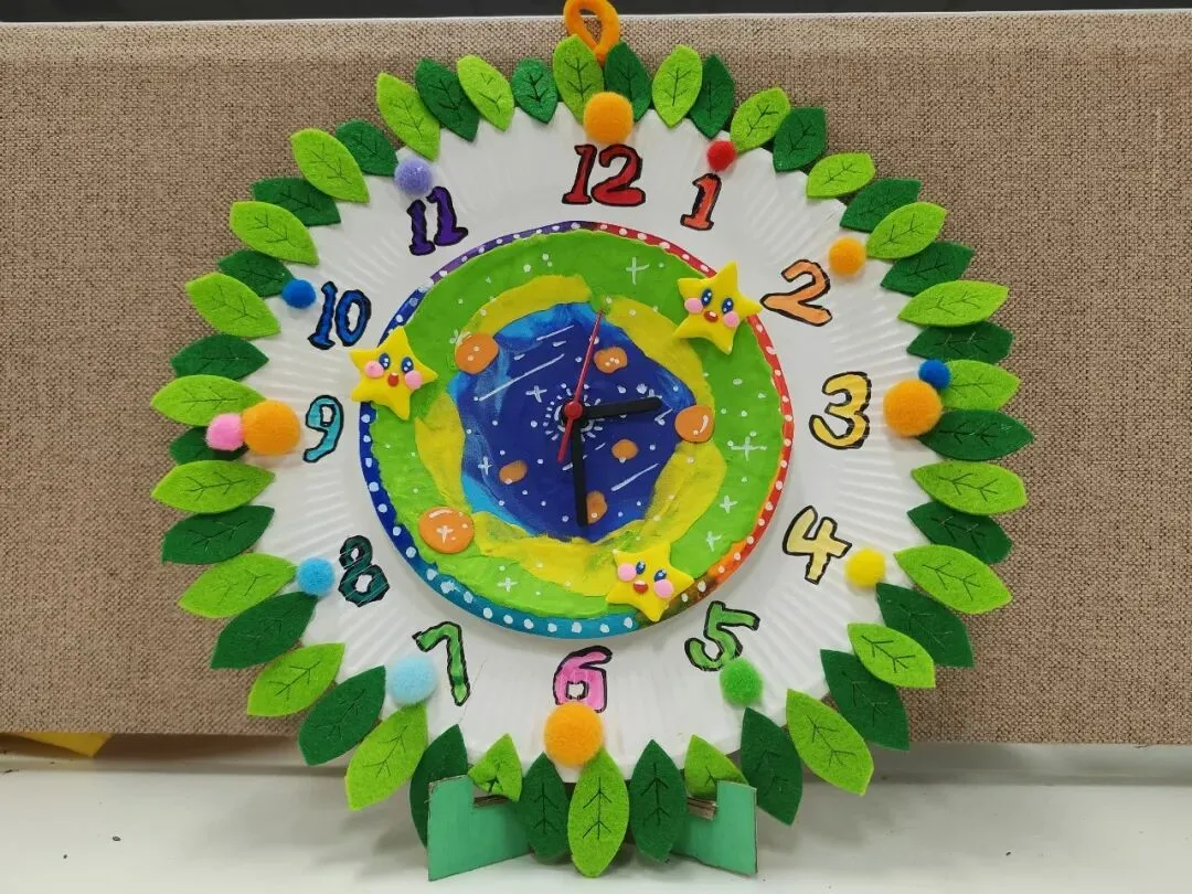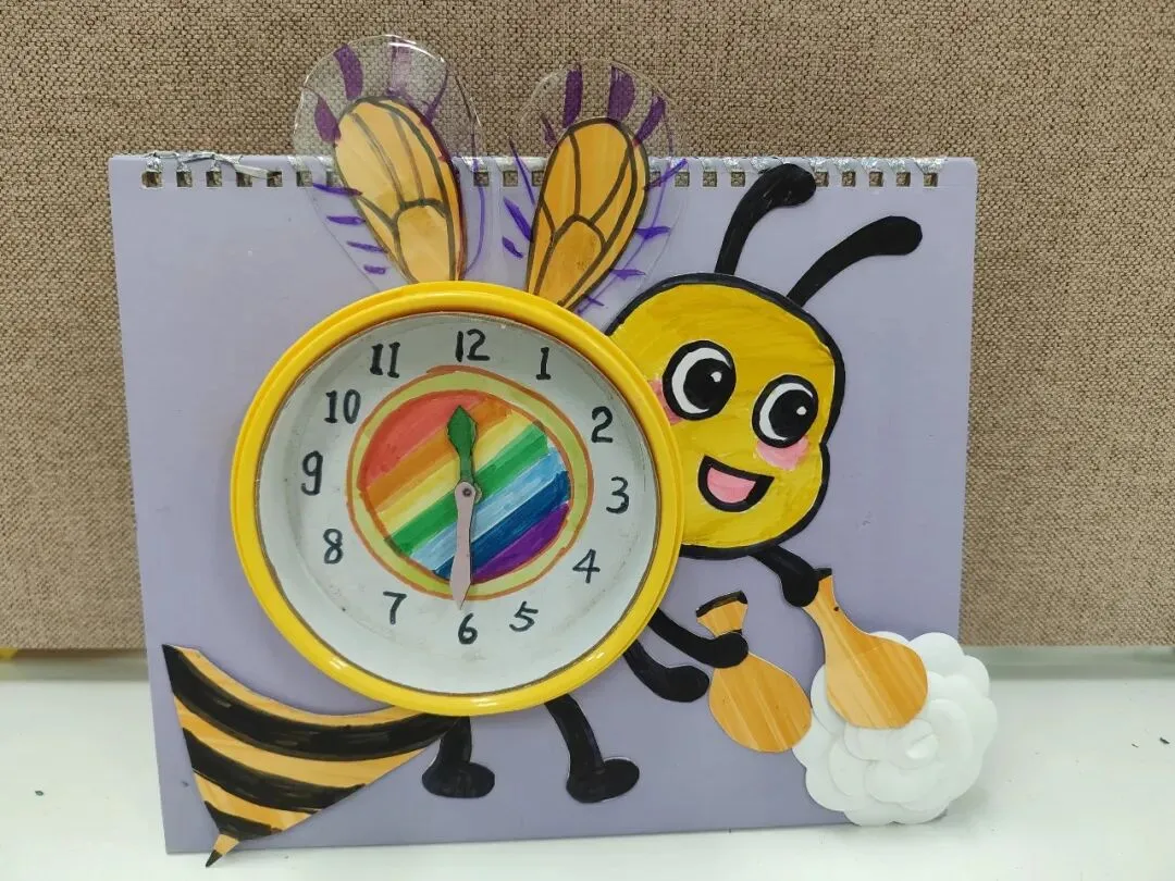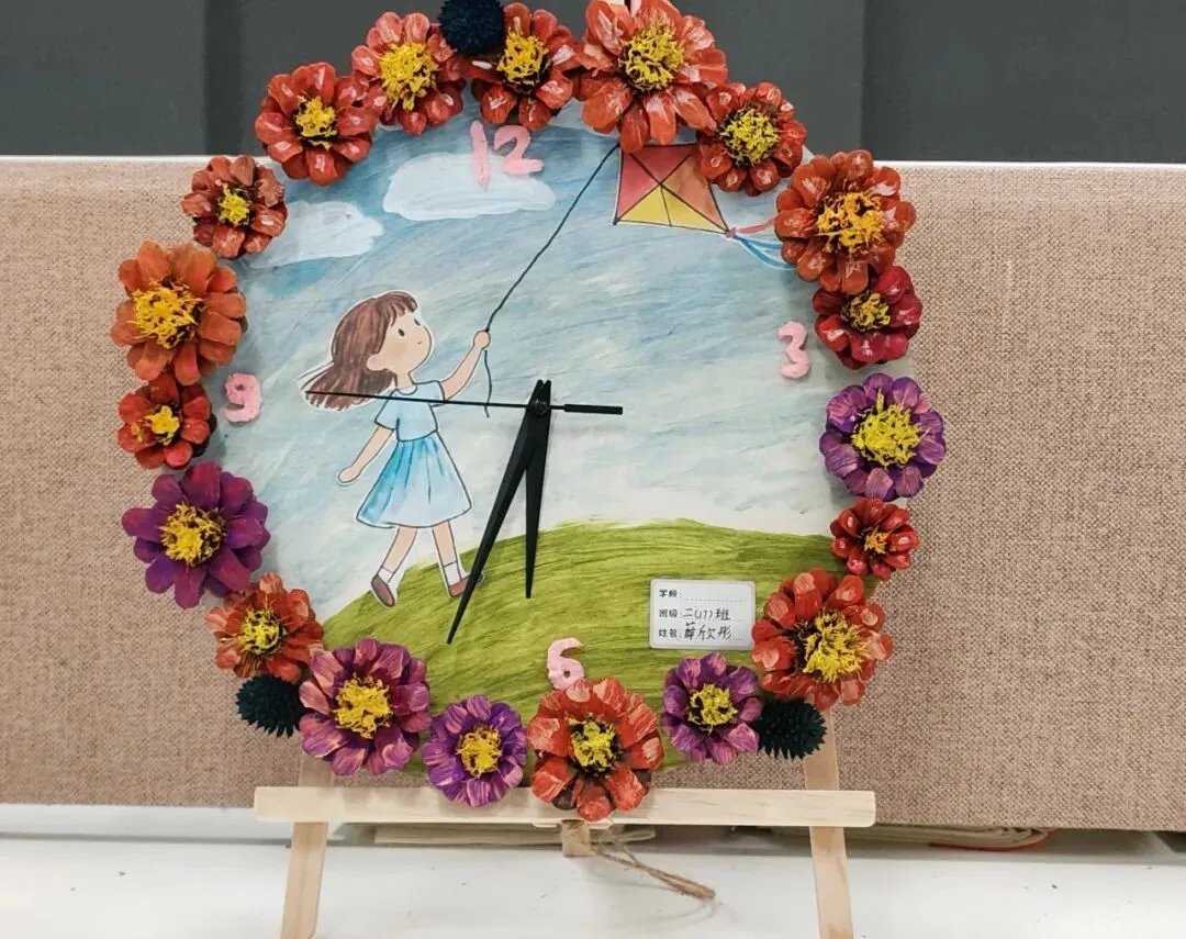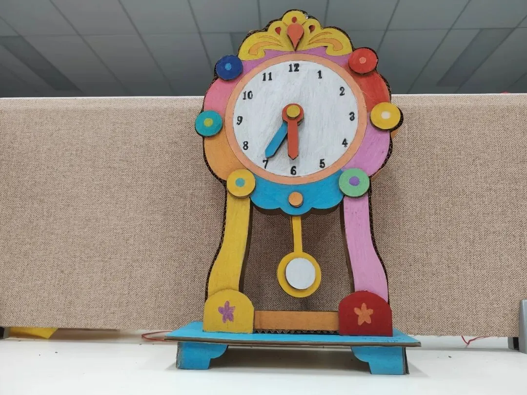 创意时钟制作环节,同学们精心设计表盘、细心装饰美化,亲手打造独一无二的专属时钟。在动手创作的过程中,大家不仅巩固了时间认知的相关知识,更锻炼了审美与动手能力。