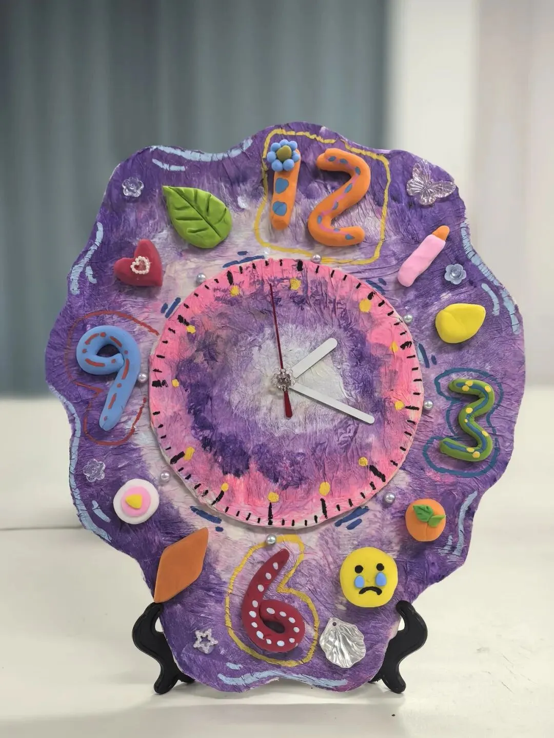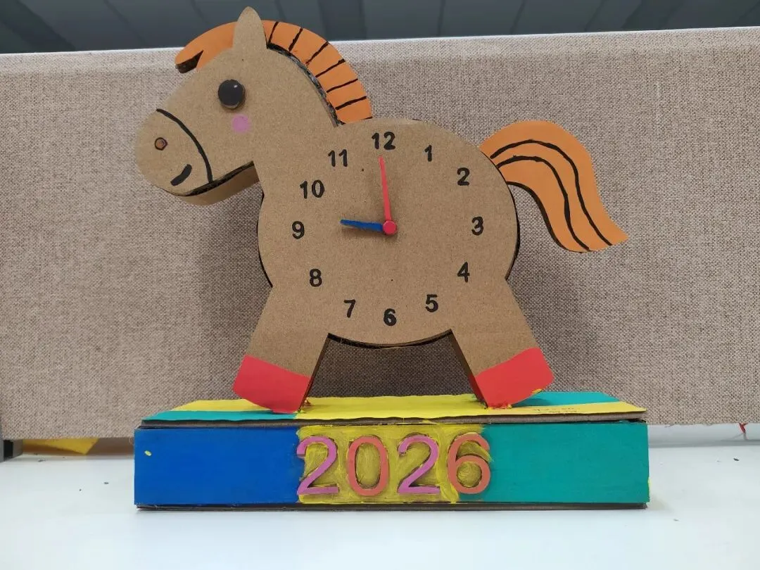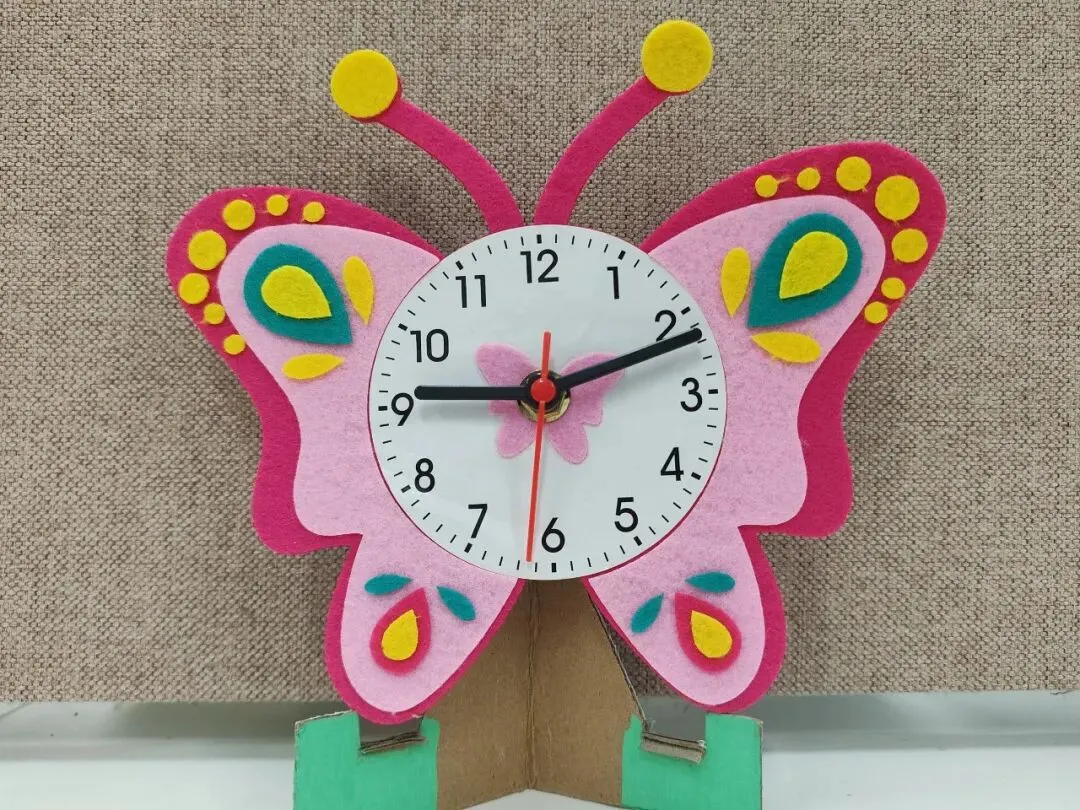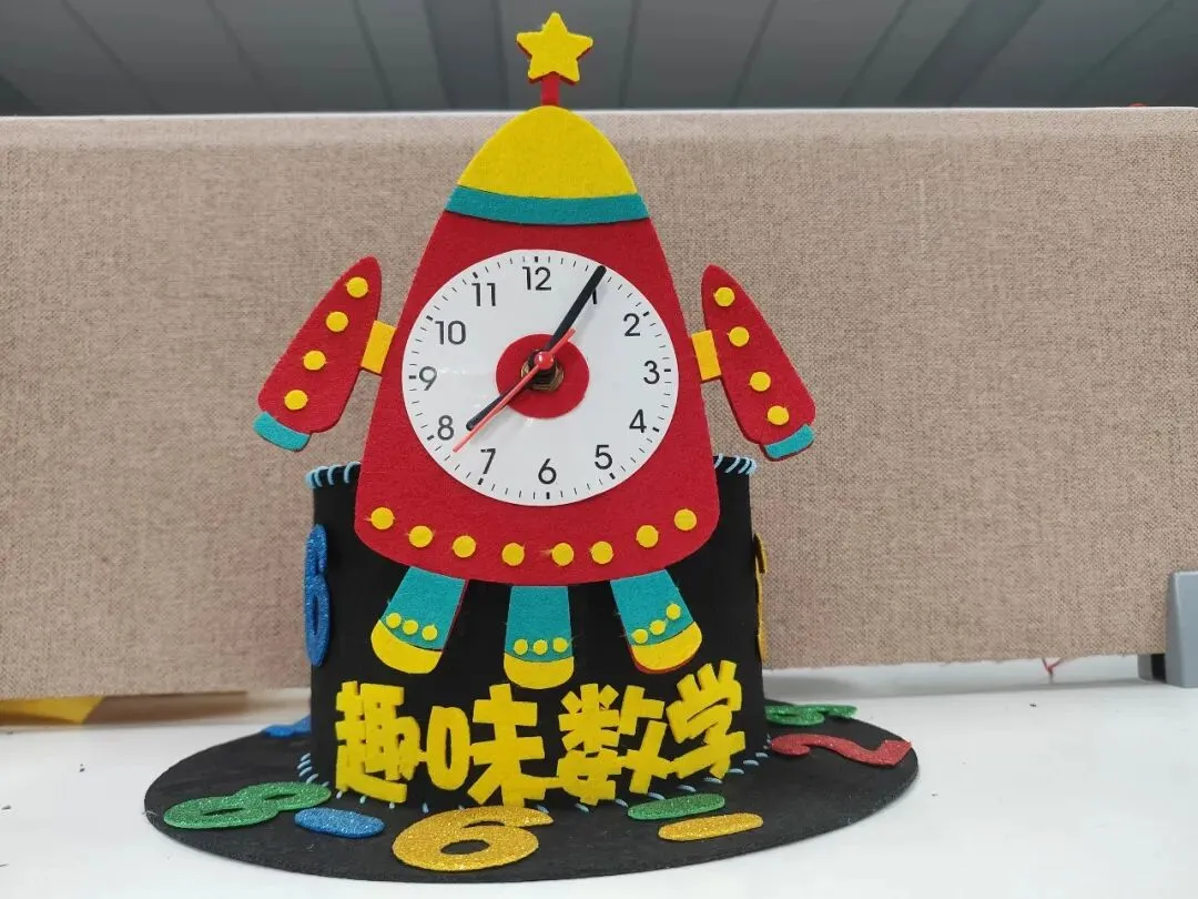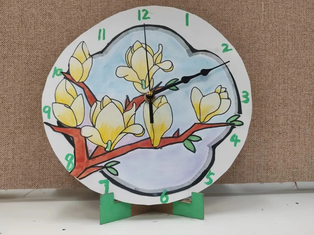 创意时钟制作环节,同学们精心设计表盘、细心装饰美化,亲手打造独一无二的专属时钟。在动手创作的过程中,大家不仅巩固了时间认知的相关知识,更锻炼了审美与动手能力。