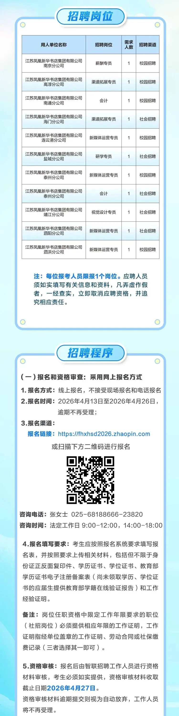 【南京招聘】国企上班!超多岗位,江苏凤凰新华书店集团有限公司市县分公司2026年春季招聘正式启动!
