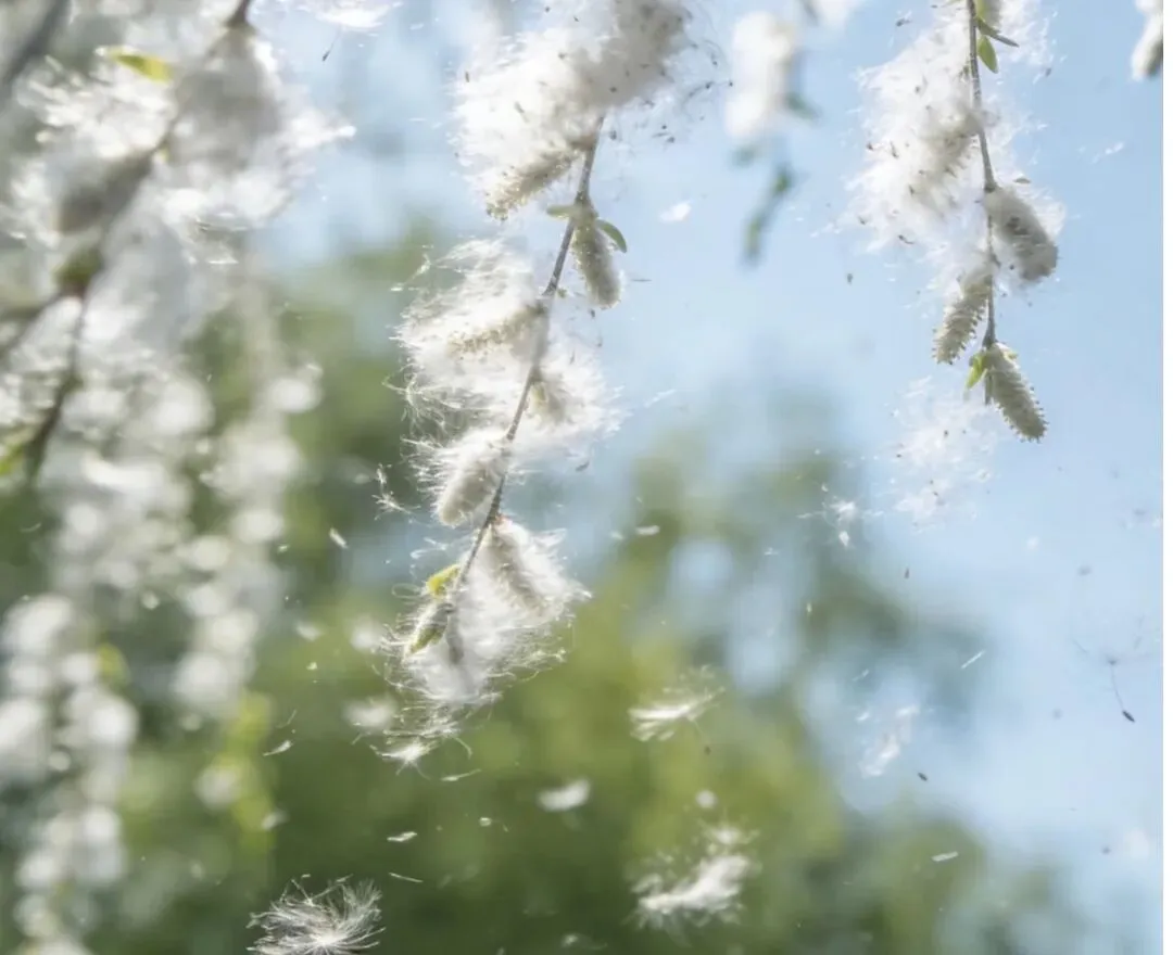 杨柳飞絮:旱柳和垂柳3月底开始飘絮,杨树5月中旬进入高峰期,整个飘絮季绵延至6月底。