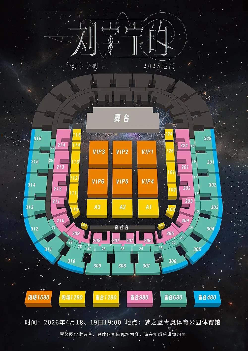 演出日期:2026年4月18日— 4月19日演出地点:南京·梦之蓝青奥体育公园体育馆门票价格:480 / 680 / 980 / 1280 / 1580元
