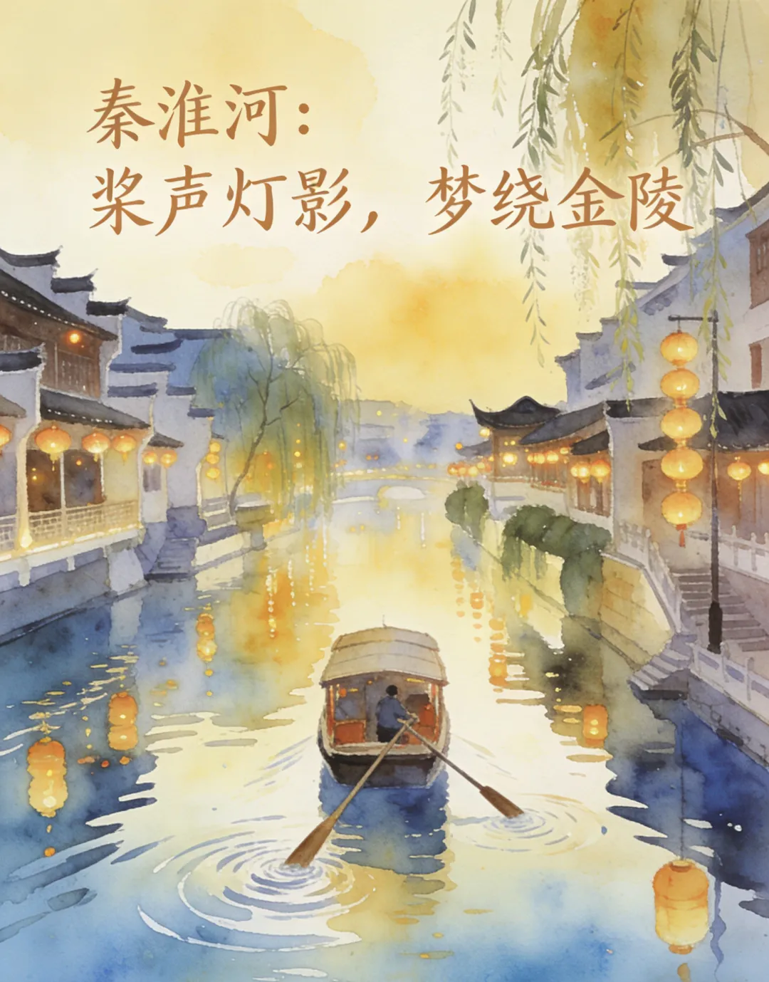 秦淮河,是刻在南京骨子里的江南魂,也是金陵千年风雅的最佳载体。这条穿城而过的河流,从六朝繁华中走来,见证过十里秦淮的笙歌曼舞,承载着无数文人墨客的诗情画意。河水悠悠,碧波荡漾,两岸的古建筑依水而建,白墙黛瓦搭配飞檐翘角,大红灯笼高高悬挂,每当暮色降临,灯火次第亮起,灯影映在河面,随波轻轻晃动,画舫缓缓穿行,桨声欸乃,打破河水的静谧。乌衣巷口,仿佛还能窥见旧时王谢堂前燕的踪迹;夫子庙前,香火与烟火交织,游人闲庭信步,赏灯观景,听一段江南小调,品一口金陵小吃。春日里,烟雨笼罩秦淮河,薄雾轻漫,楼台亭阁若隐若现,恰似一幅晕染开的水墨江南;夏夜晚风拂面,河风带着丝丝清凉,吹散白日的燥热,尽是温柔缱绻。一河秦淮水,半部金陵史,把江南的诗意与繁华,全都揉进了这悠悠流水里。