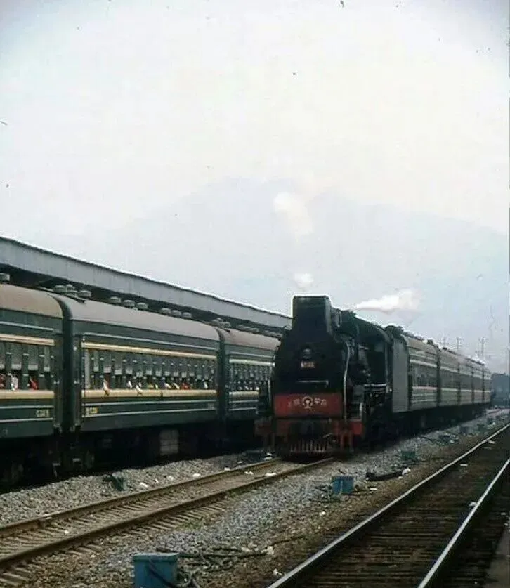 这种同框特别耐看。车厢里坐着准备出发的人,机车却还带着更早年代的影子。一个代表当时最常见的长途出行,一个像是从更老的铁路岁月里留下来的身影。站在站台上看,应该会听见铁轨的轻响、远处的汽笛声,还有煤烟混着热风的味道。这样的场景,你以前见过吗?如果见过,大概一辈子都忘不了。